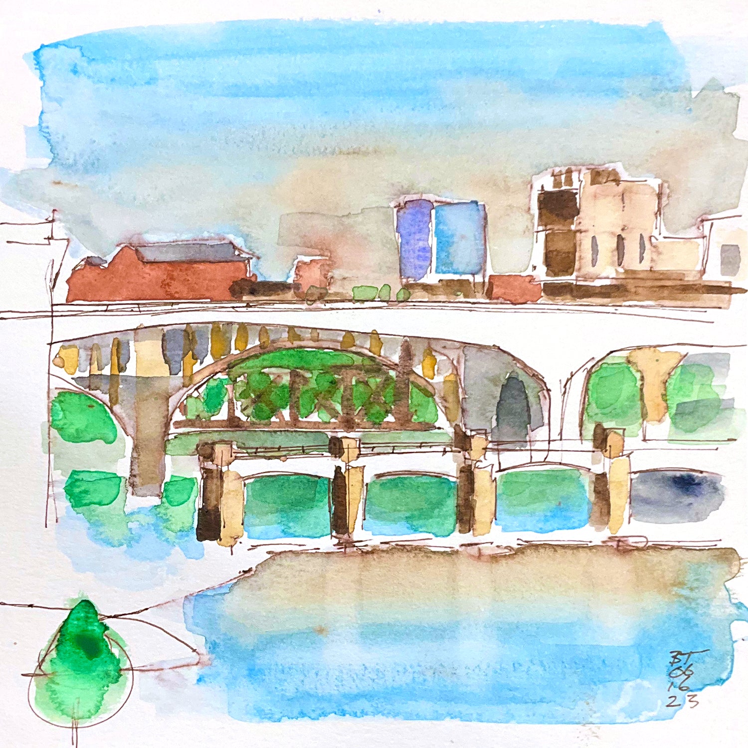 Plein air watercolor field sketch, on #140 lb paper.