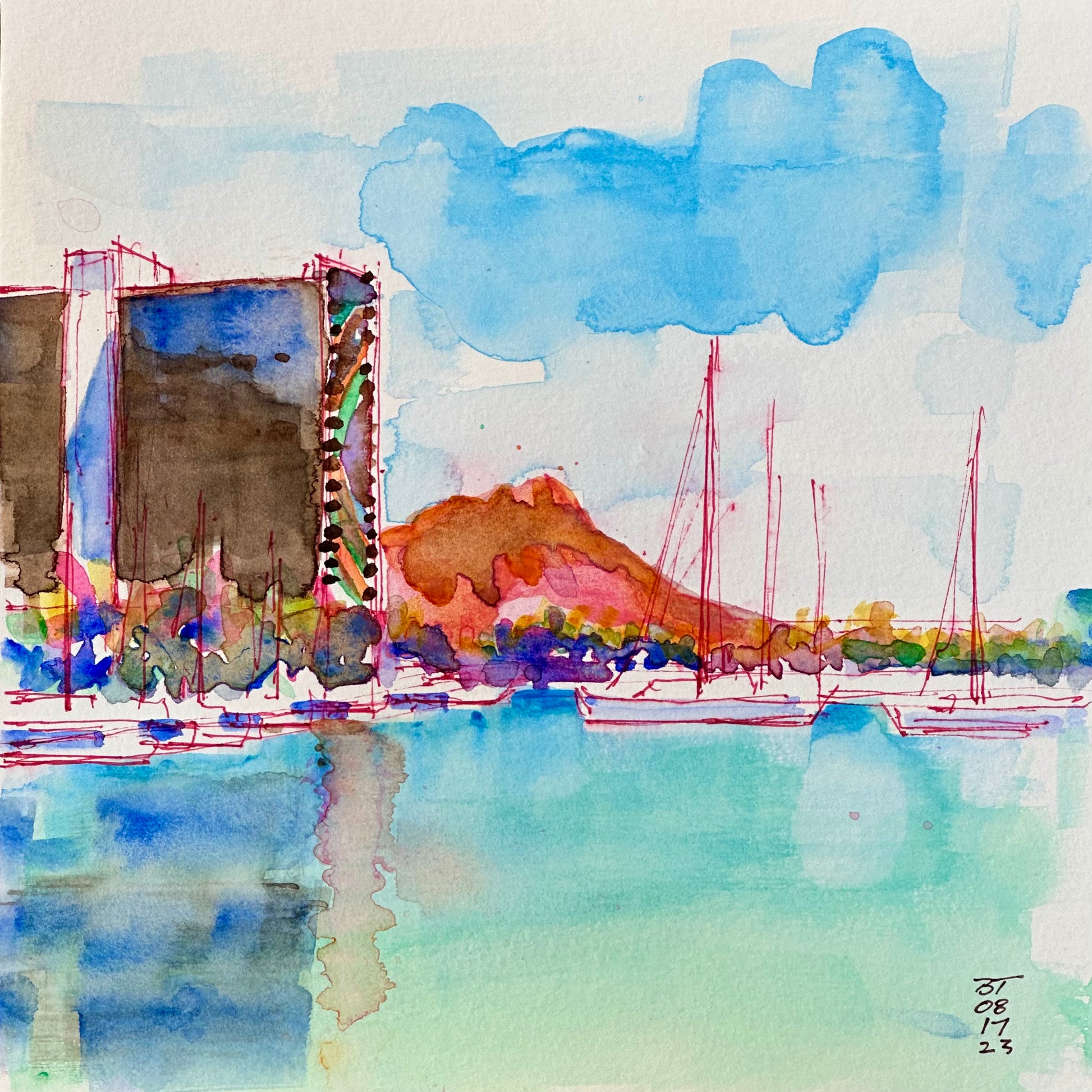 Made to fit a 8" x 8" frame size, or 8" x 8" mat window opening. Fits nicely into this frame, with mat, from Amazon (outer dimensions of actual frame 12" x 12").