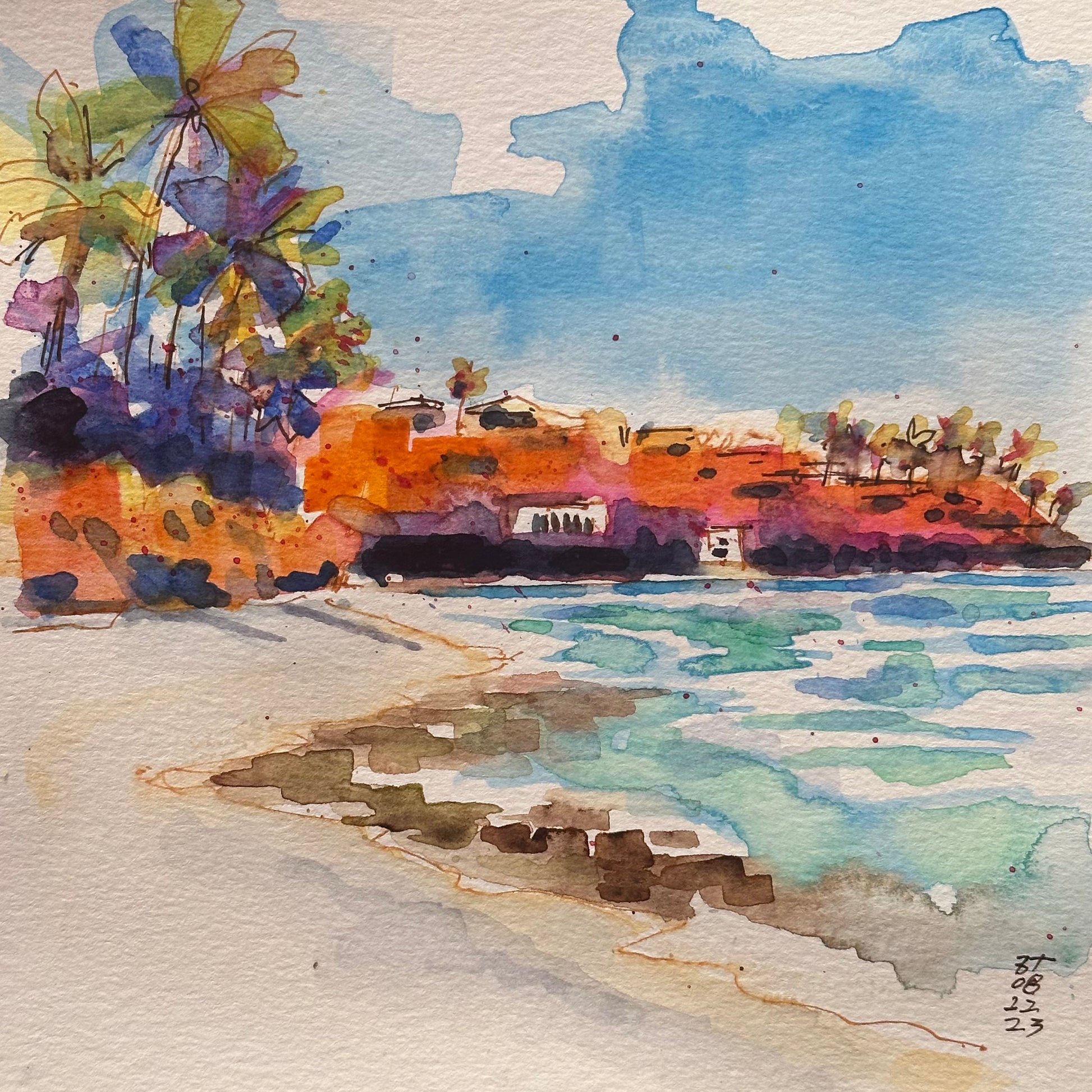 Made to fit a 8" x 8" frame size, or 8" x 8" mat window opening. Fits nicely into this frame, with mat, from Amazon (outer dimensions of actual frame 12" x 12").