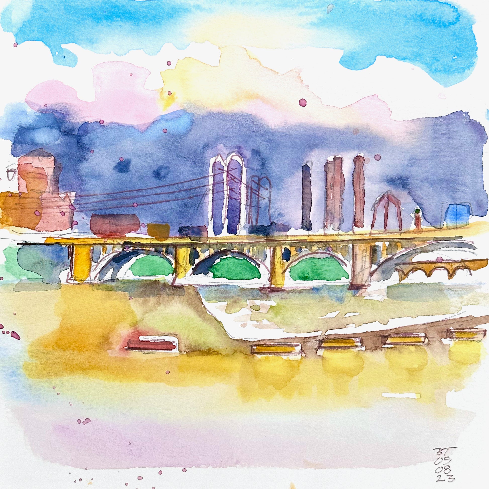 Brilliant Foreground, Inclement Sky, Mpls River Front, 05.08.23