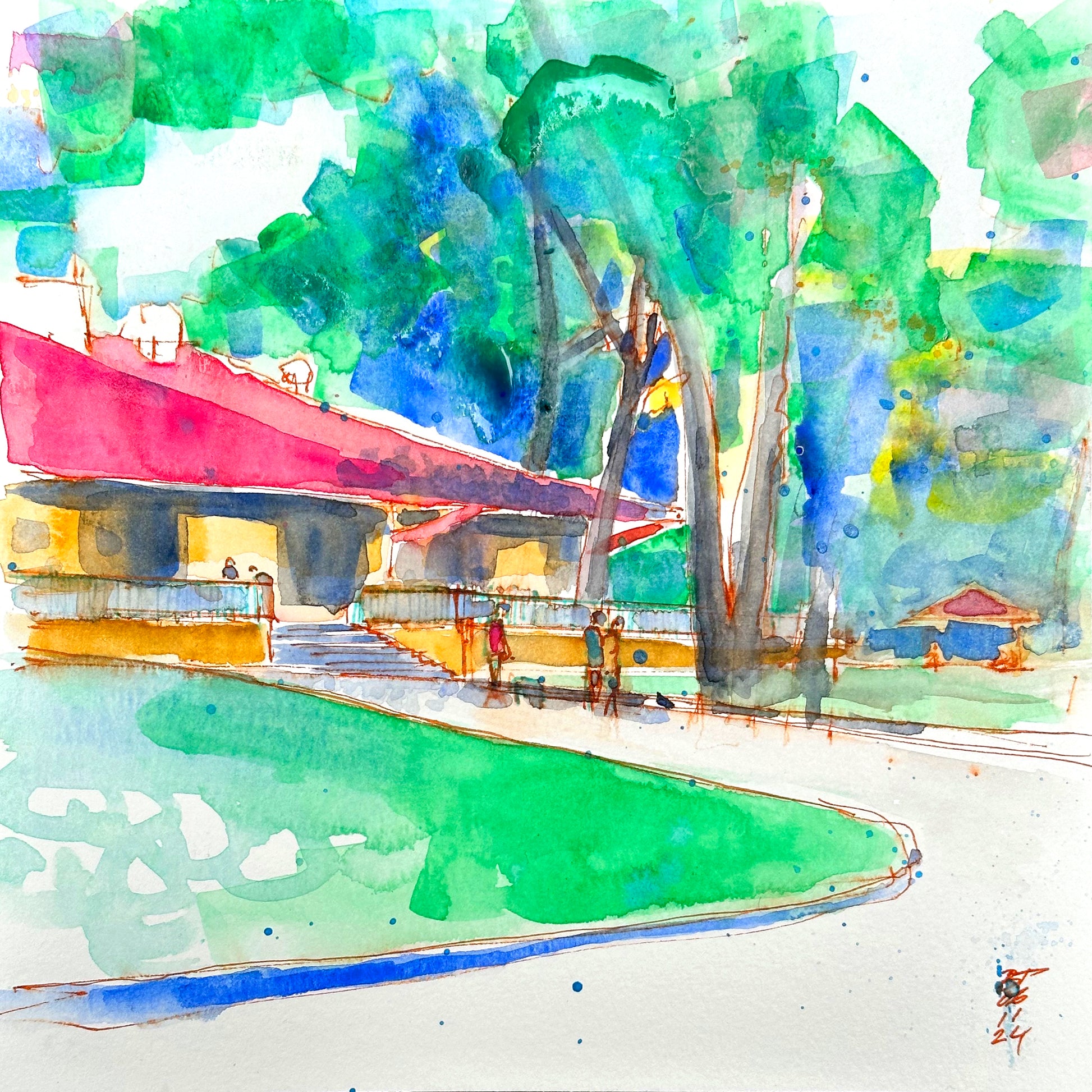 Plein air watercolor field sketch, on #140 lb paper.