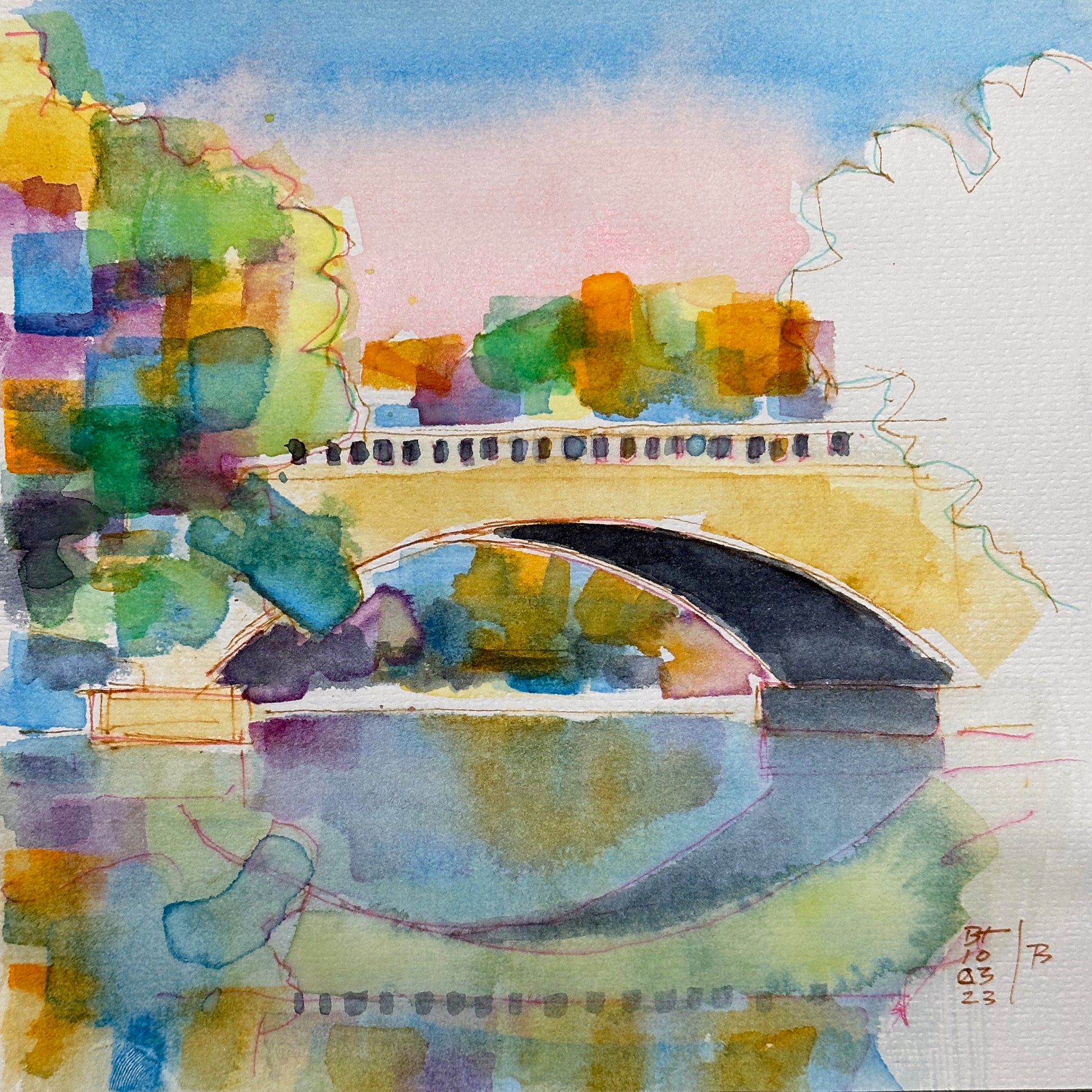 Made to fit a 8" x 8" frame size, or 8" x 8" mat window opening. Fits nicely into this frame, with mat, from Amazon (outer dimensions of actual frame 12" x 12").
