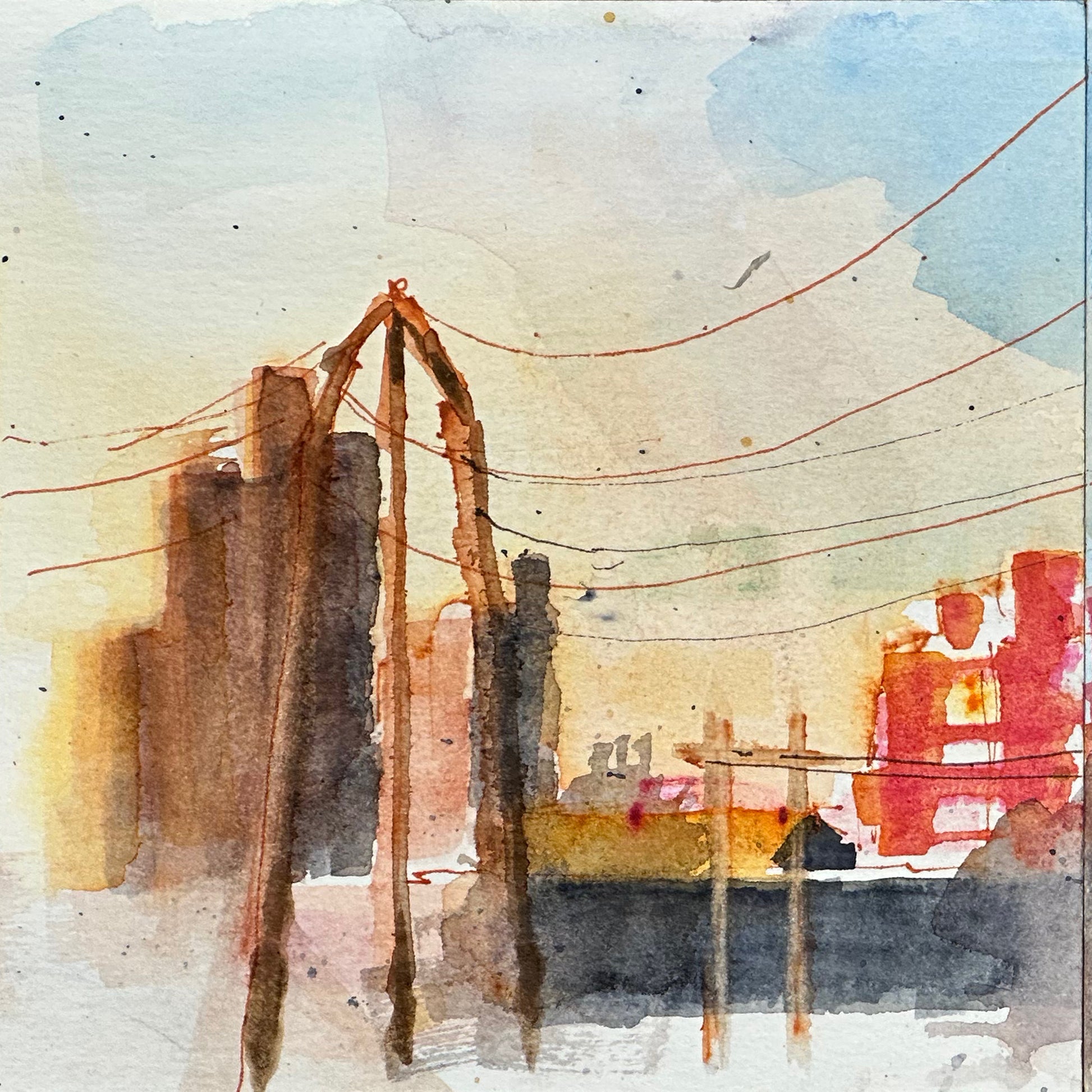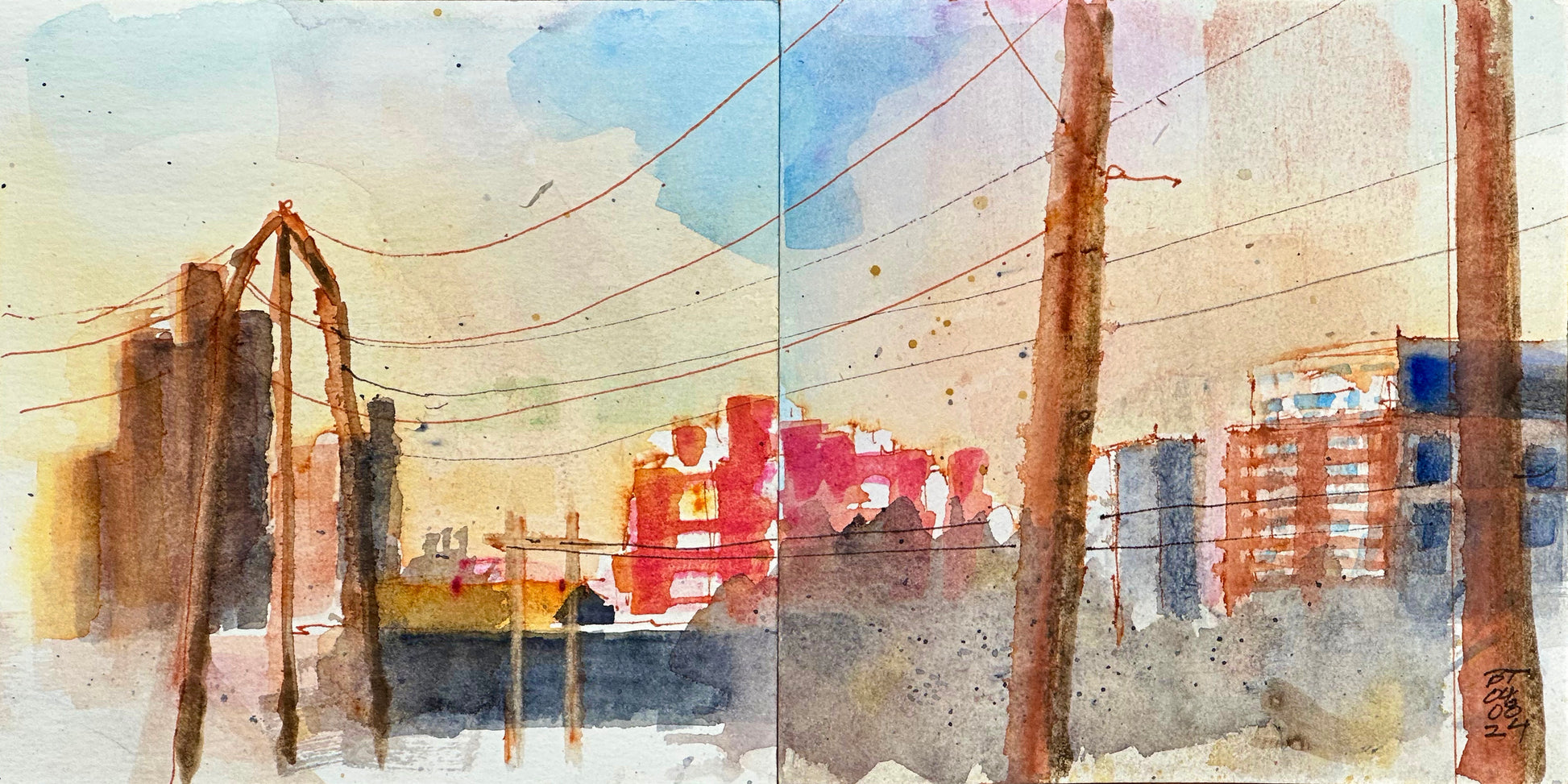 Diptych of two 6x6 watercolor sketches created as one composition.