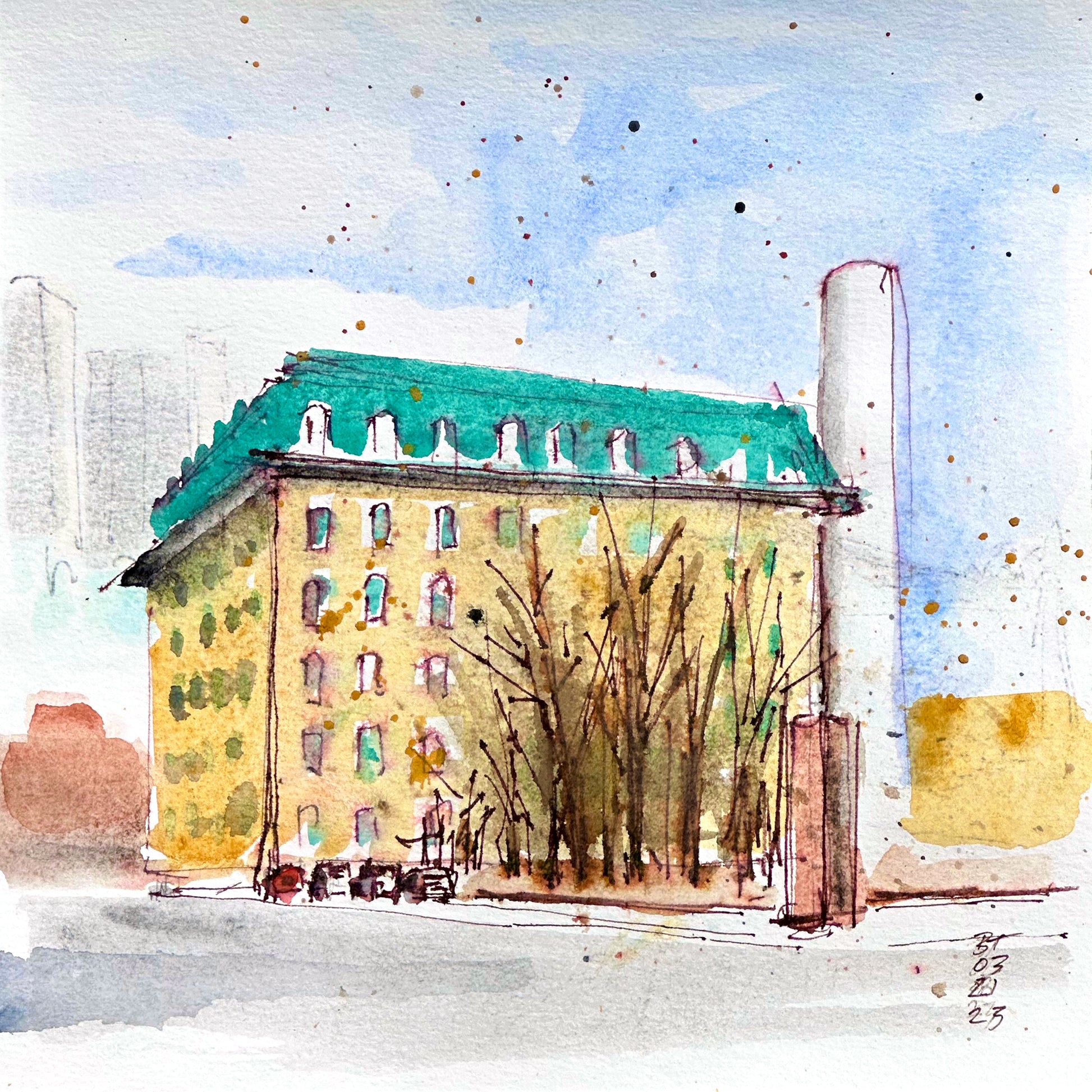 Plein air watercolor field sketch, on #140 lb paper.
