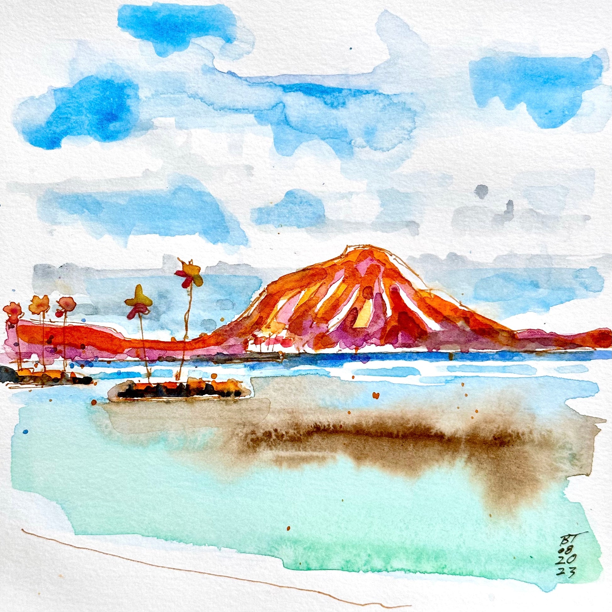 Made to fit a 8" x 8" frame size, or 8" x 8" mat window opening. Fits nicely into this frame, with mat, from Amazon (outer dimensions of actual frame 12" x 12").