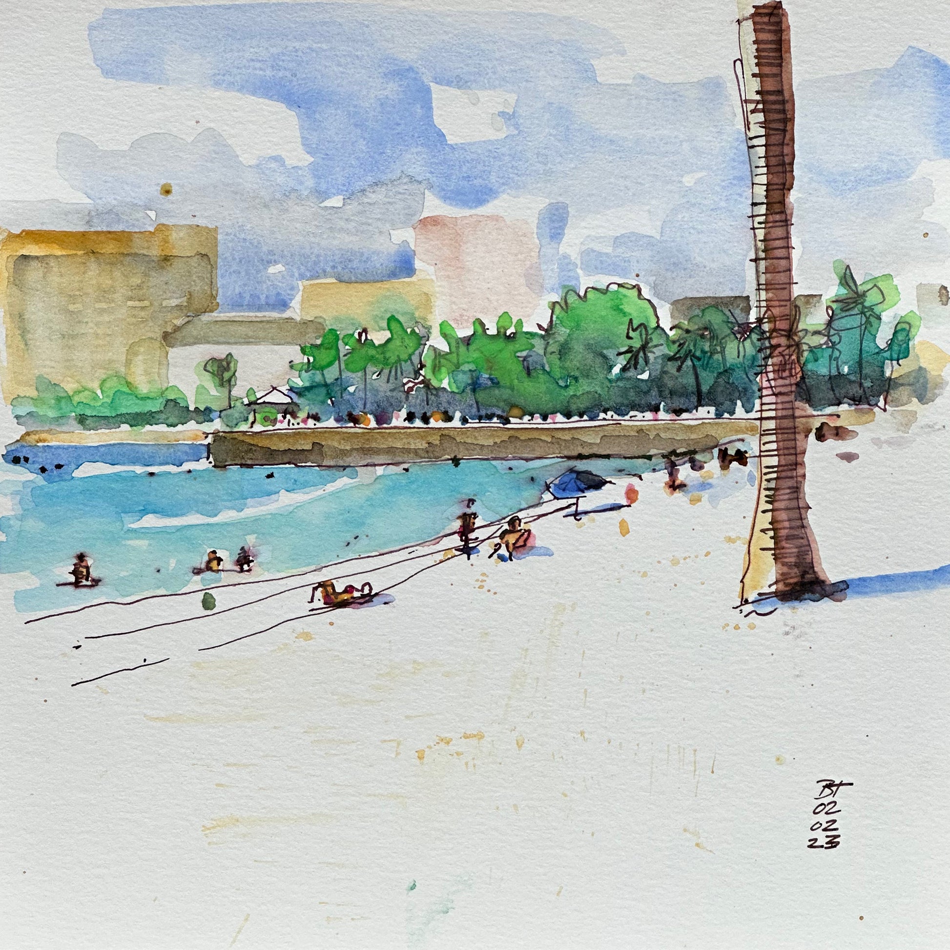 Made to fit a 8" x 8" frame size, or 8" x 8" mat window opening. Fits nicely into this frame, with mat, from Amazon (outer dimensions of actual frame 12" x 12").