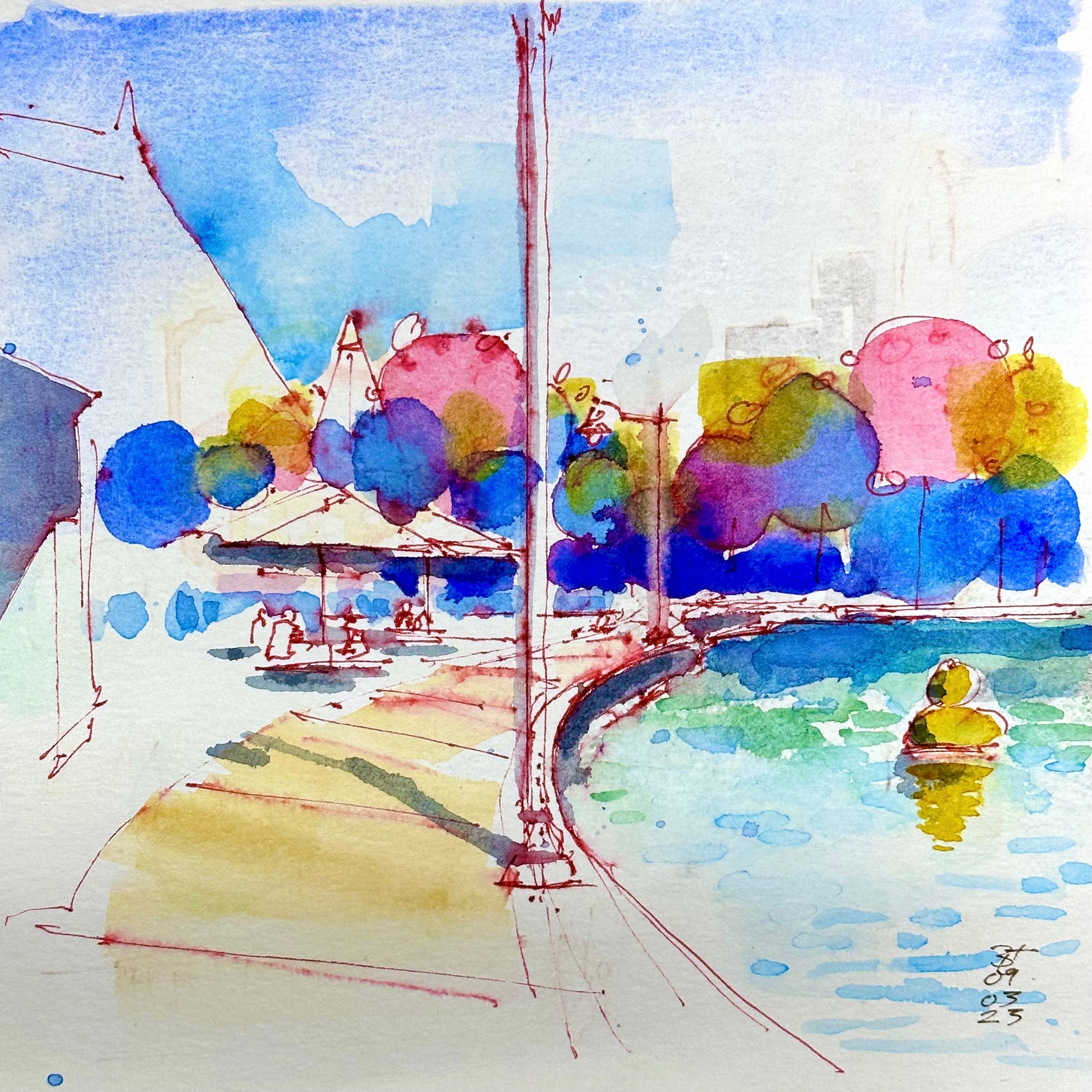Plein air watercolor field sketch, on #140 lb paper.