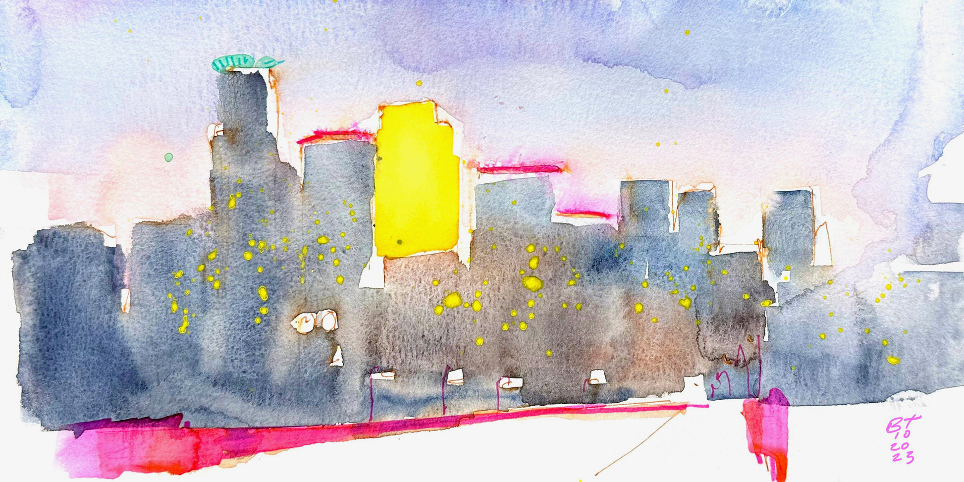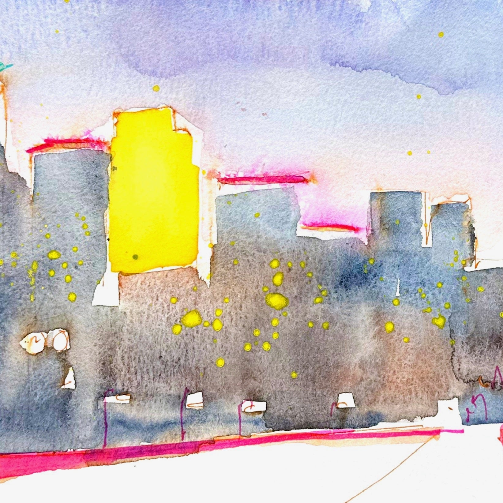Diptych of two 6x6 watercolor sketches created as one composition.
