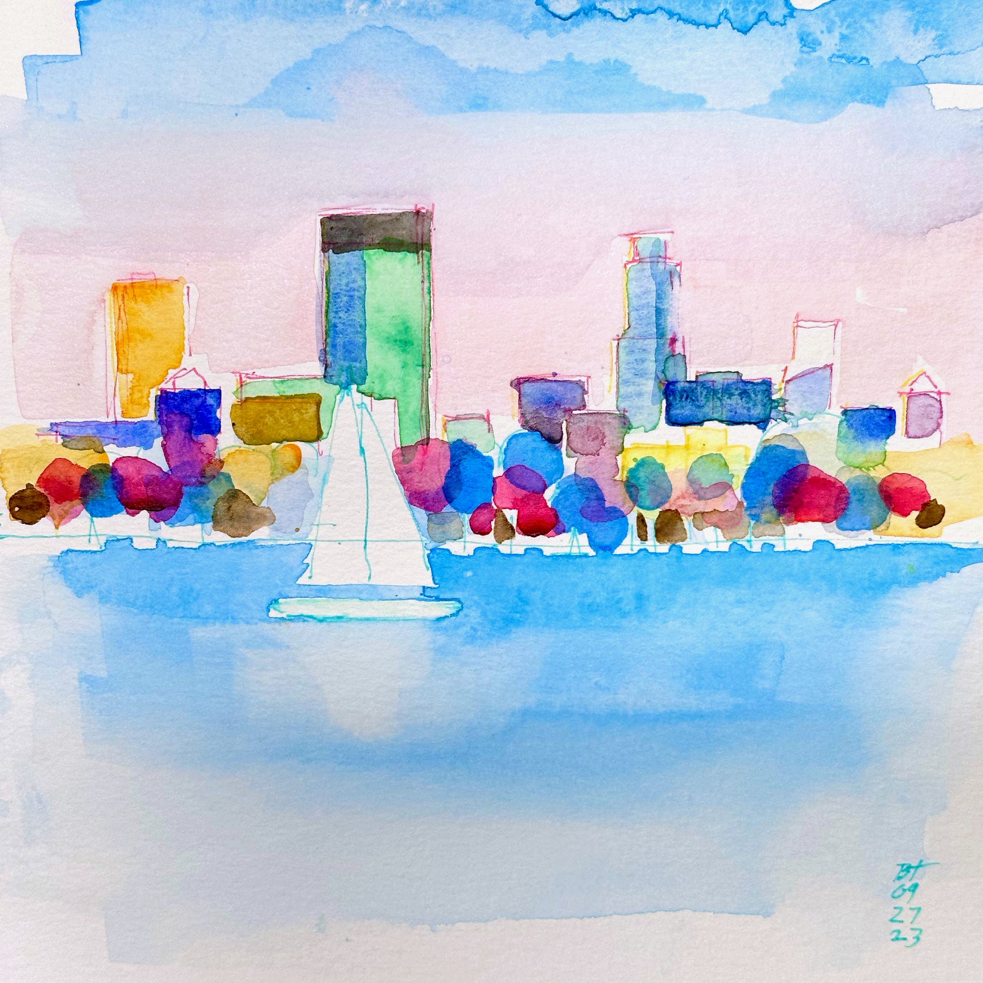 Made to fit a 8" x 8" frame size, or 8" x 8" mat window opening. Fits nicely into this frame, with mat, from Amazon (outer dimensions of actual frame 12" x 12").