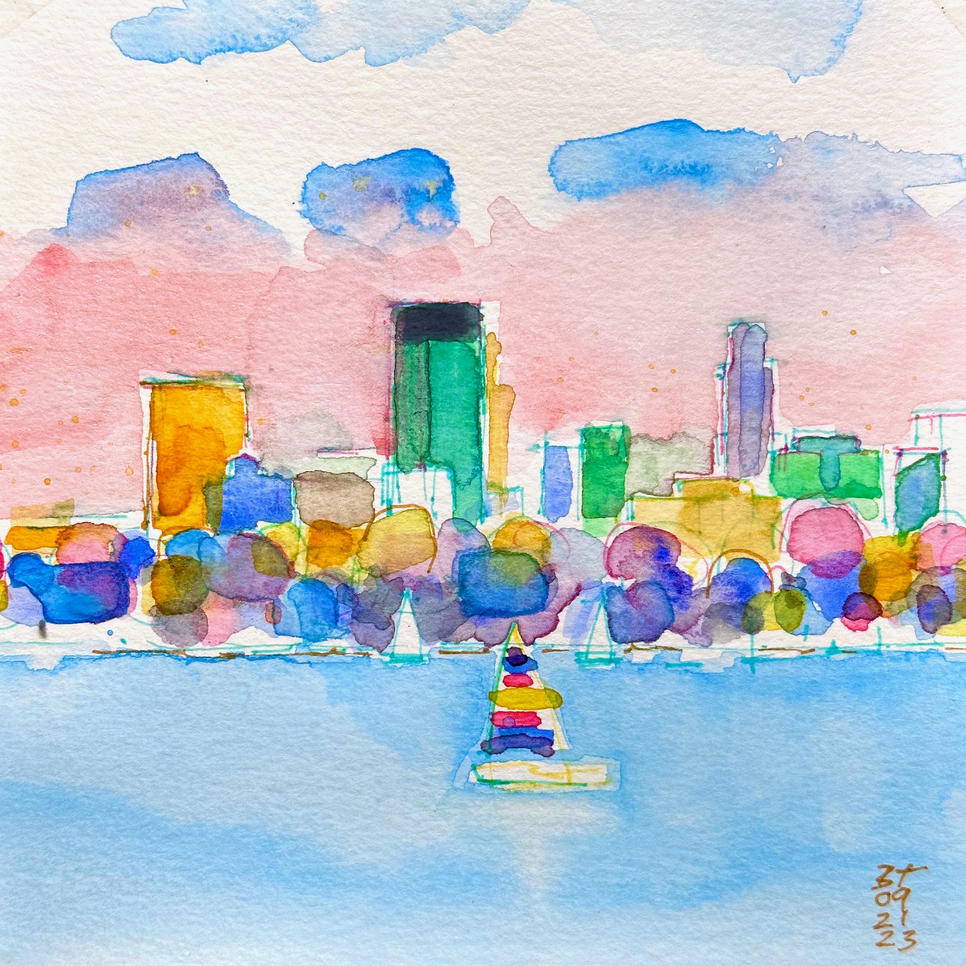Mpls Skyline over Lake Calhoun with Colorful Sail Boat, 09.21.23