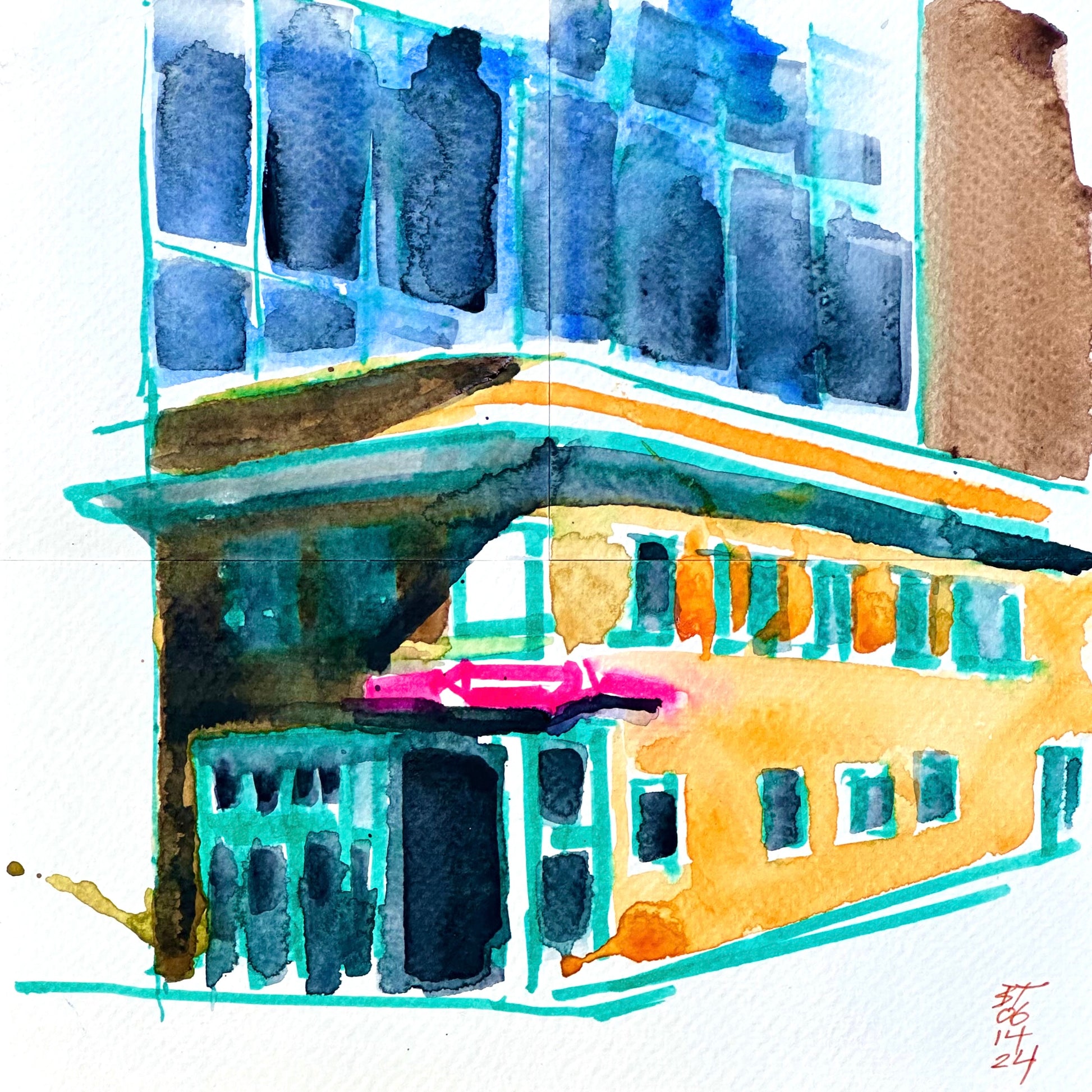 8" x 8". Fits nicely into this frame, with mat, from Amazon.