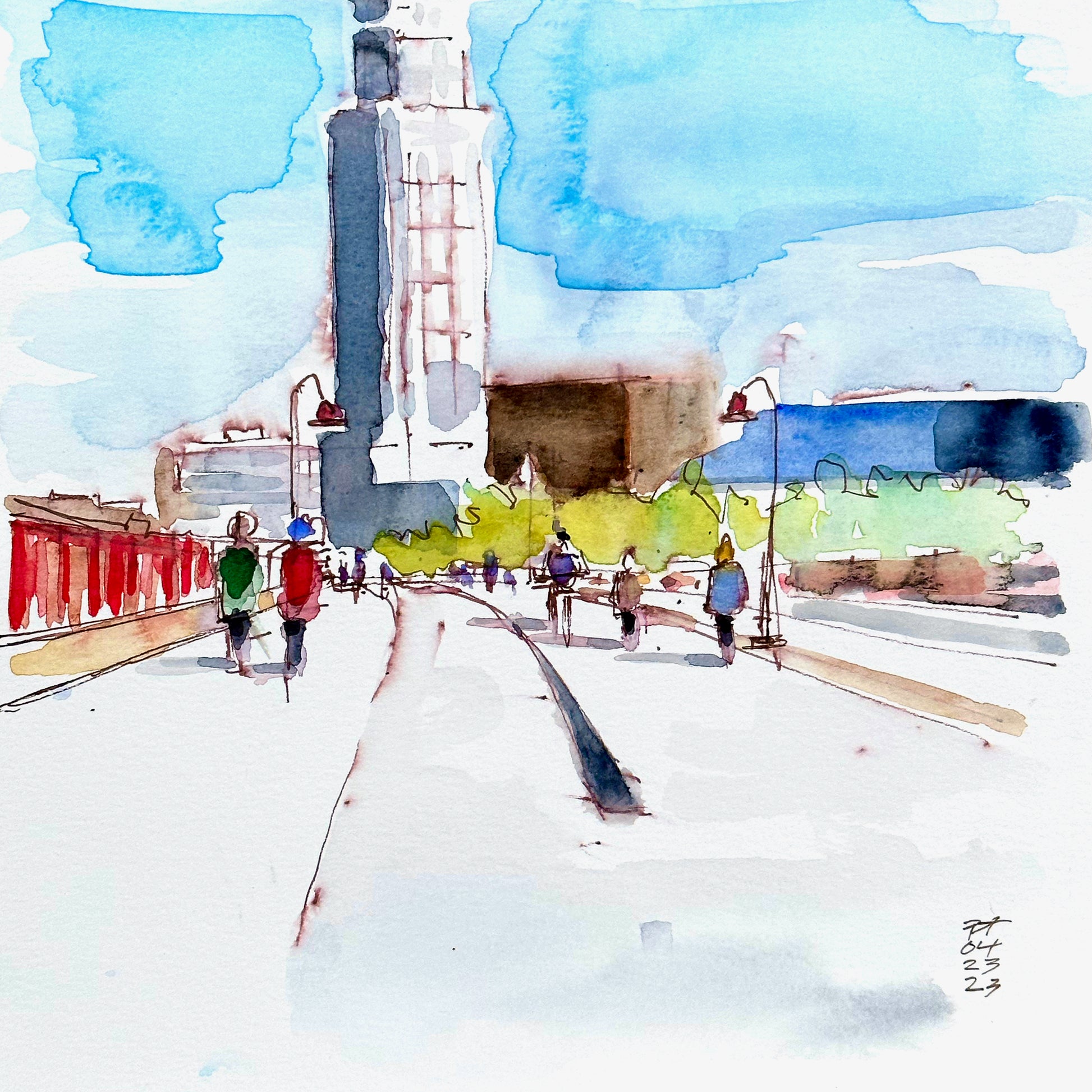 Made to fit a 8" x 8" frame size, or 8" x 8" mat window opening. Fits nicely into this frame, with mat, from Amazon (outer dimensions of actual frame 12" x 12").