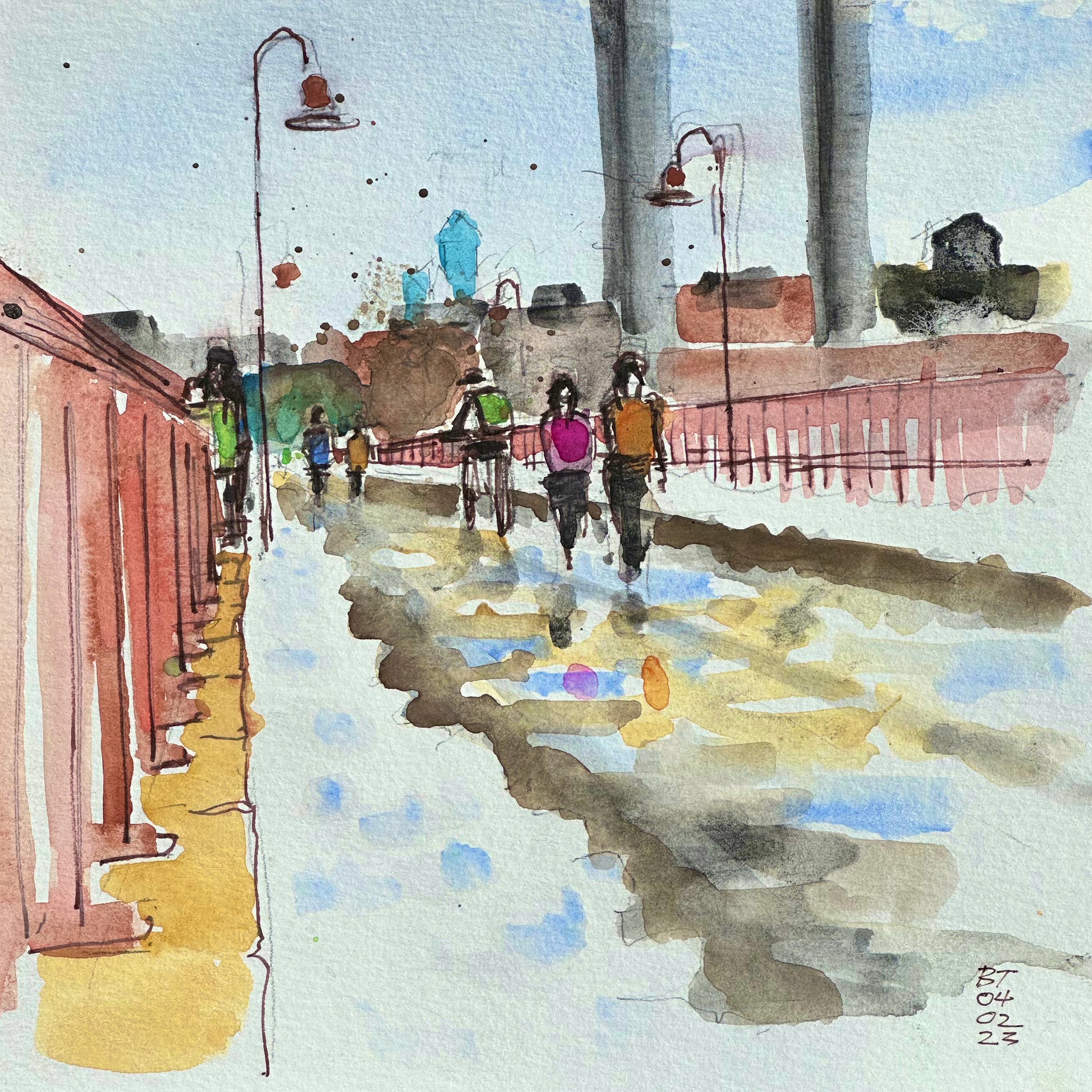 Made to fit a 8" x 8" frame size, or 8" x 8" mat window opening. Fits nicely into this frame, with mat, from Amazon (outer dimensions of actual frame 12" x 12").