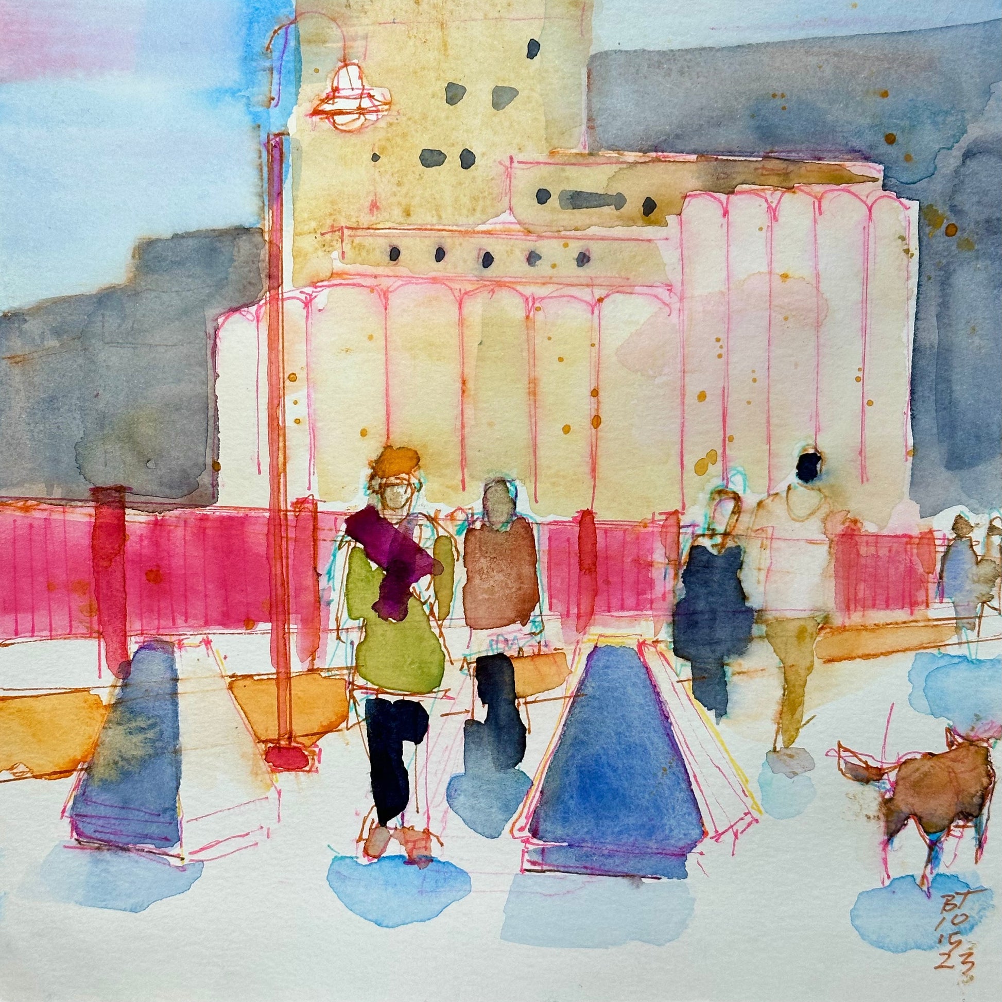 Made to fit a 8" x 8" frame size, or 8" x 8" mat window opening. Fits nicely into this frame, with mat, from Amazon (outer dimensions of actual frame 12" x 12").