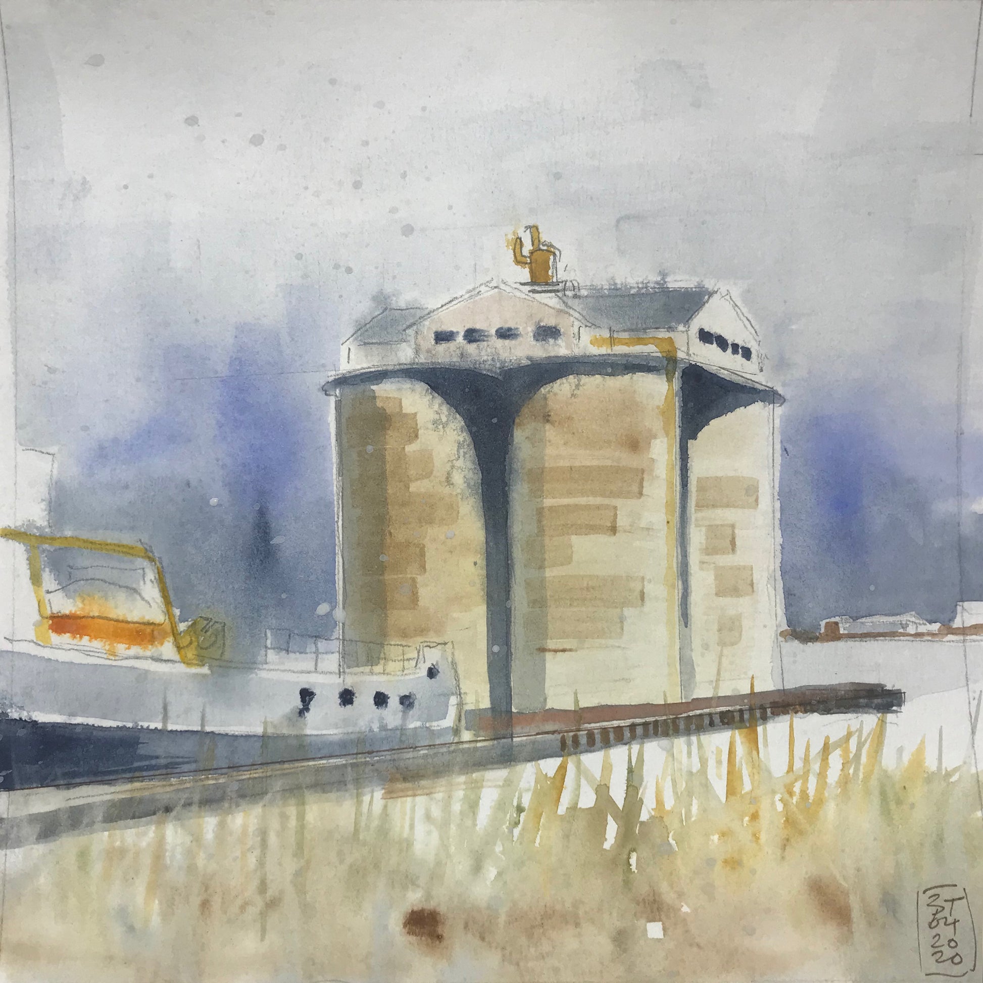 An original water color and ink sketch, on heavyweight watercolor paper. Fits a 8" x 8" mat opening.