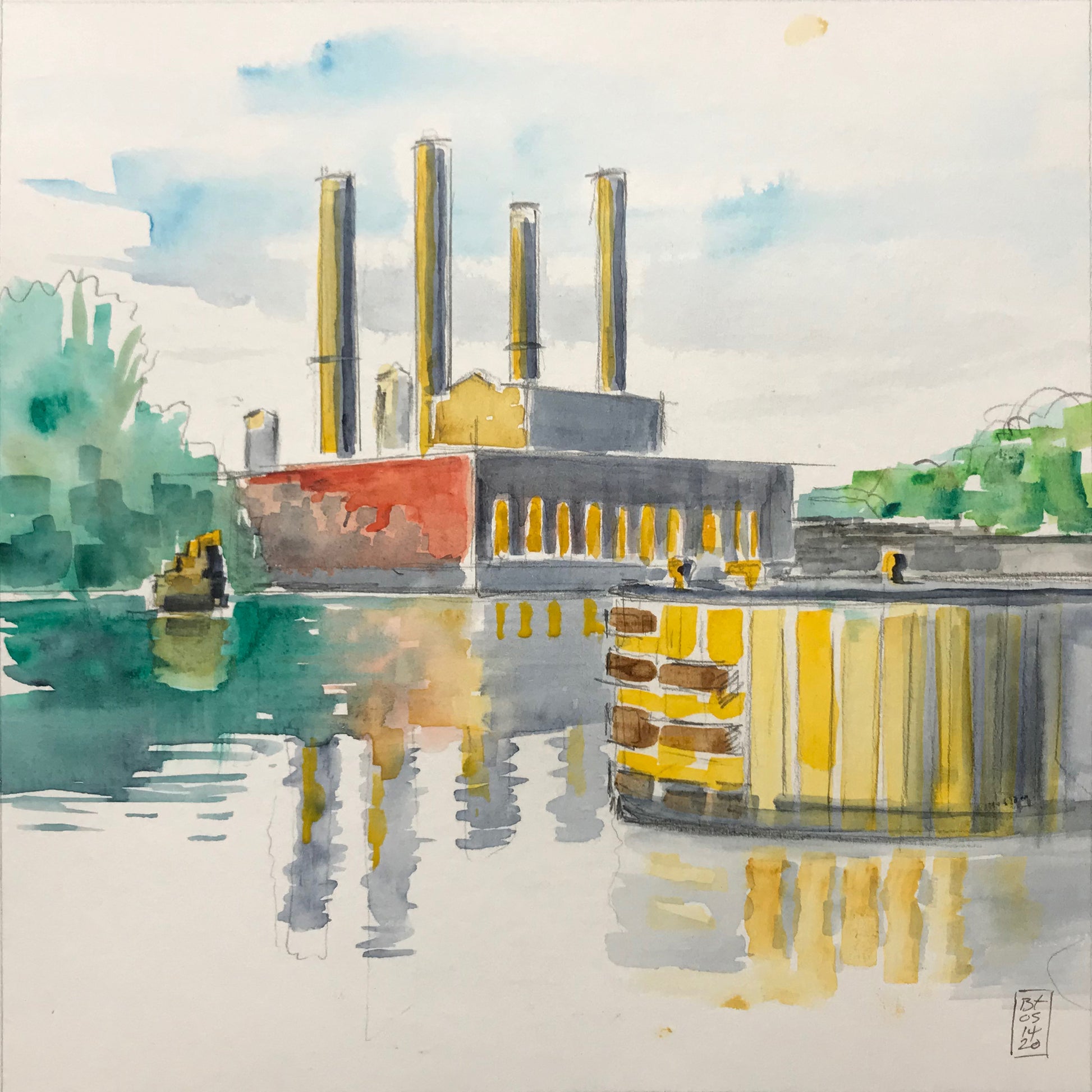 An original watercolor and ink sketch, on heavyweight paper. Fits a 8" x 8" mat opening.