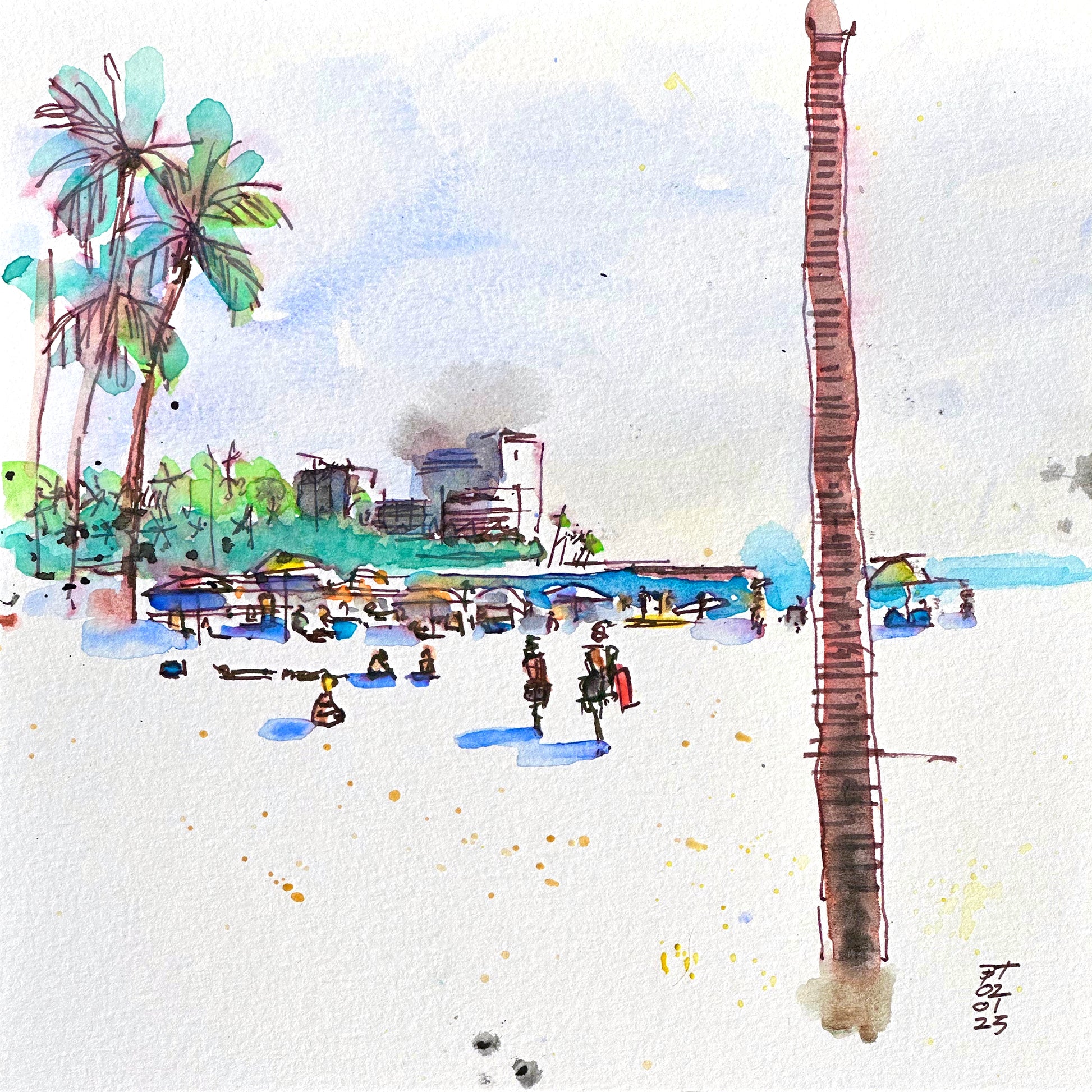 Made to fit a 8" x 8" frame size, or 8" x 8" mat window opening. Fits nicely into this frame, with mat, from Amazon (outer dimensions of actual frame 12" x 12").