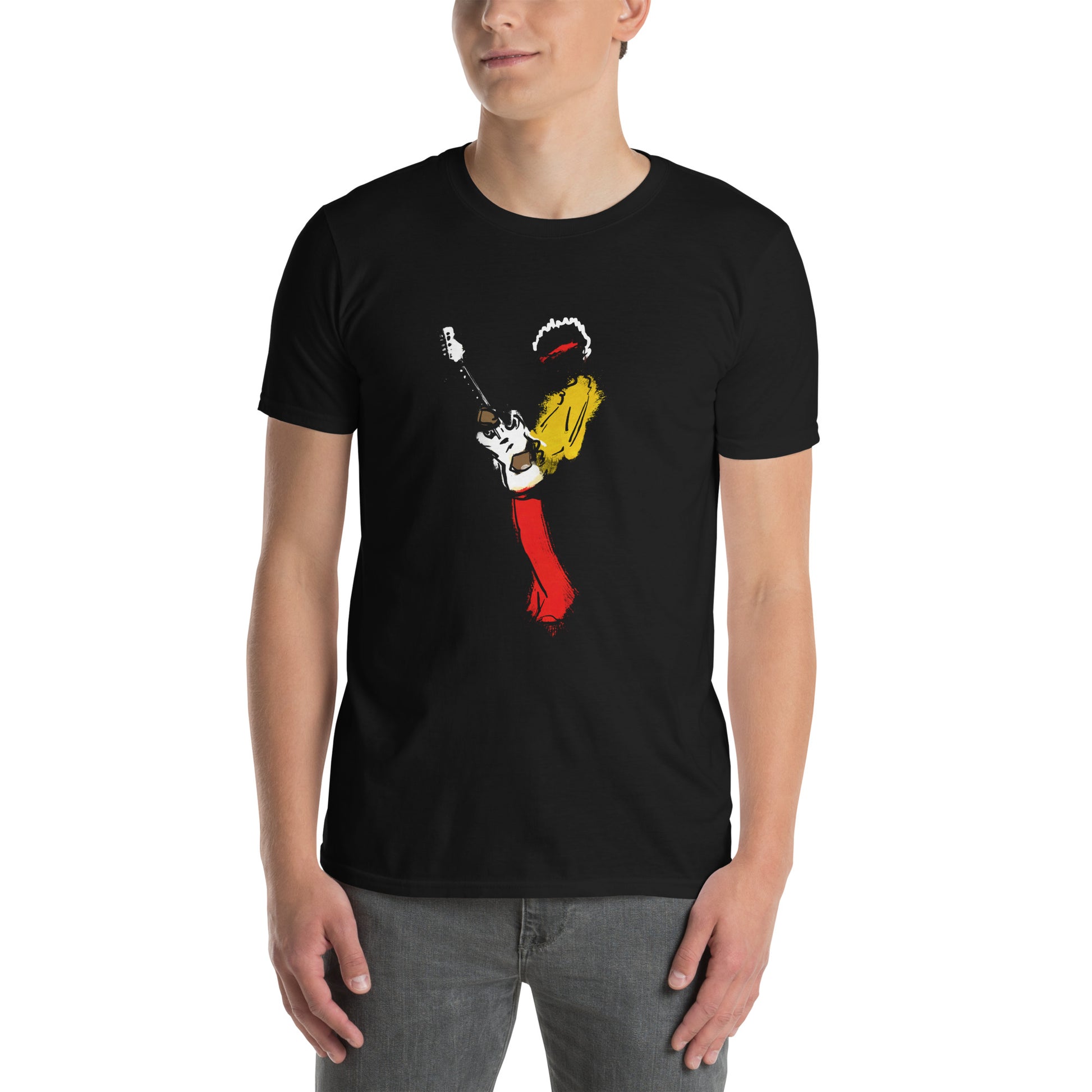 All cotton black t-shirt, print on front.