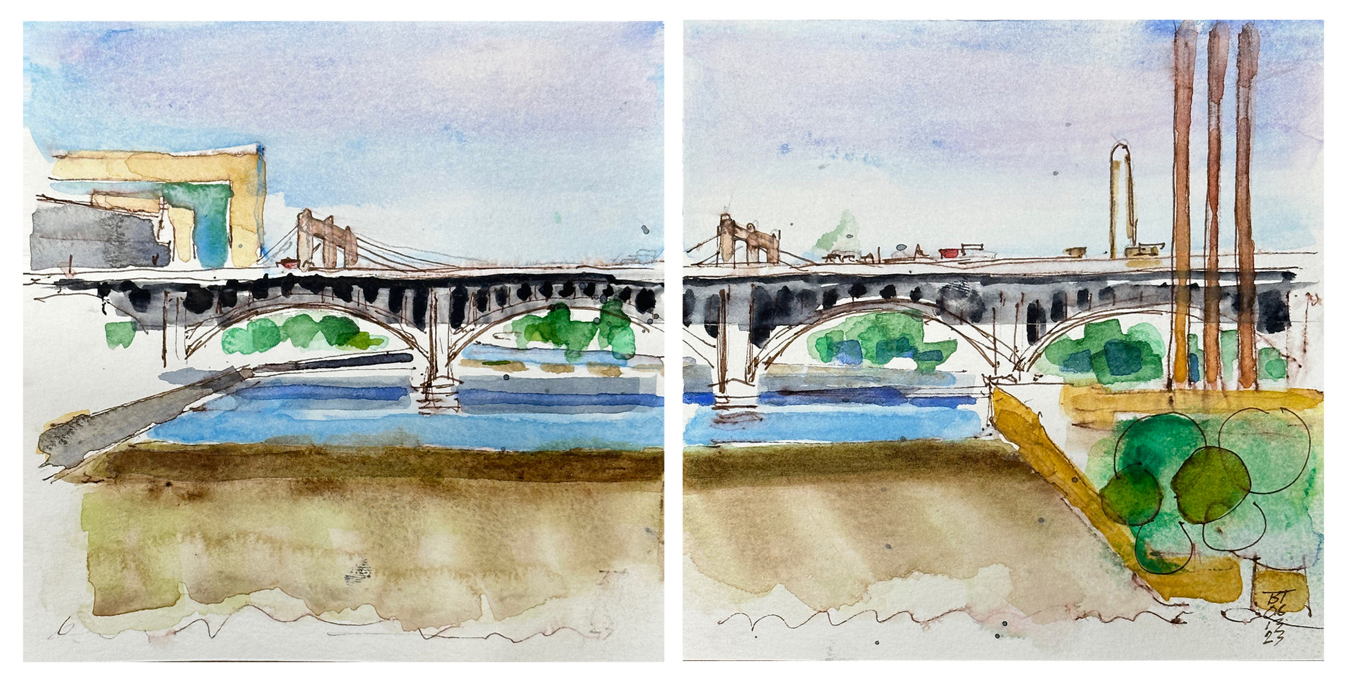 St. Anthony Falls and Third Avenue Bridge (Diptych), 06.13.23