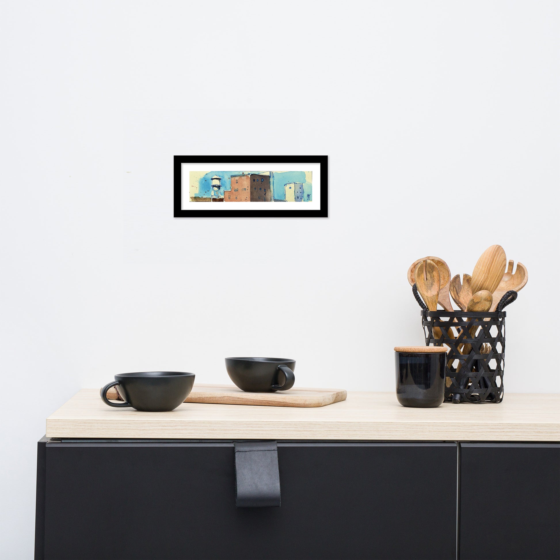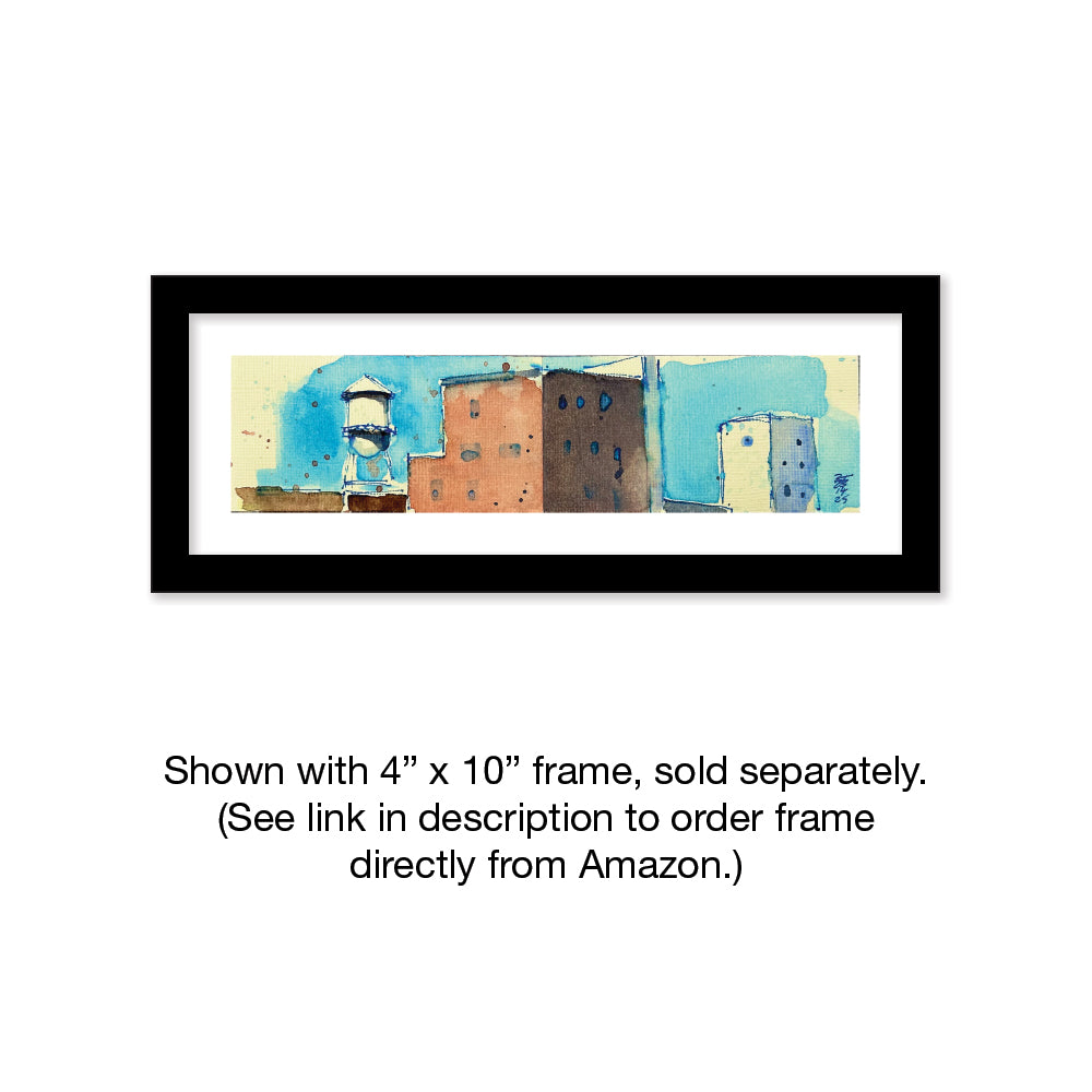 2" x 8". Fits nicely into this frame from Amazon (Mount art onto a 4"x10" sheet of cardstock or paper, then set into frame).