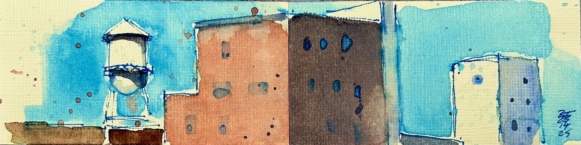 Plein air watercolor field sketch, on creme-colored linen paper.