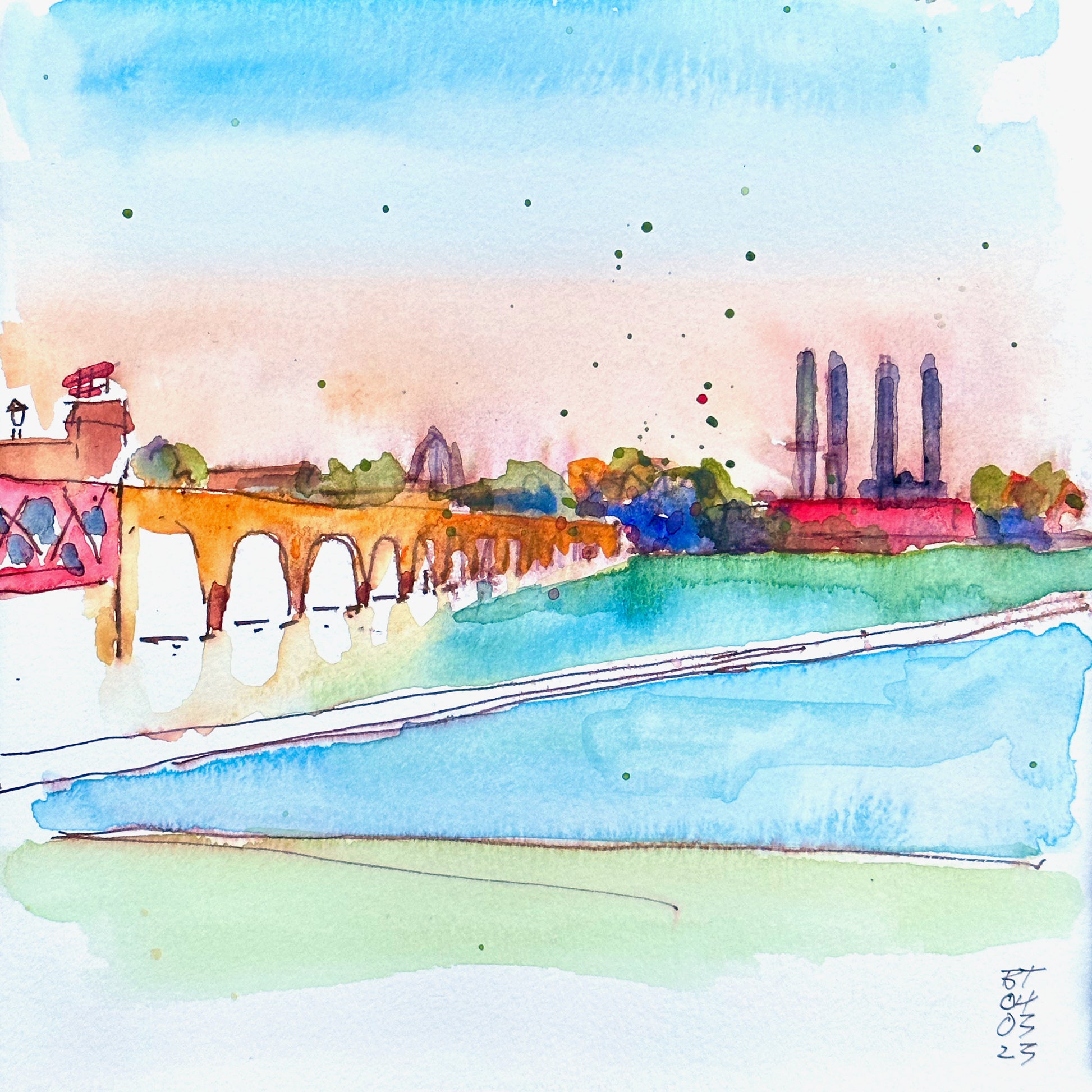Made to fit a 8" x 8" frame size, or 8" x 8" mat window opening. Fits nicely into this frame, with mat, from Amazon (outer dimensions of actual frame 12" x 12").
