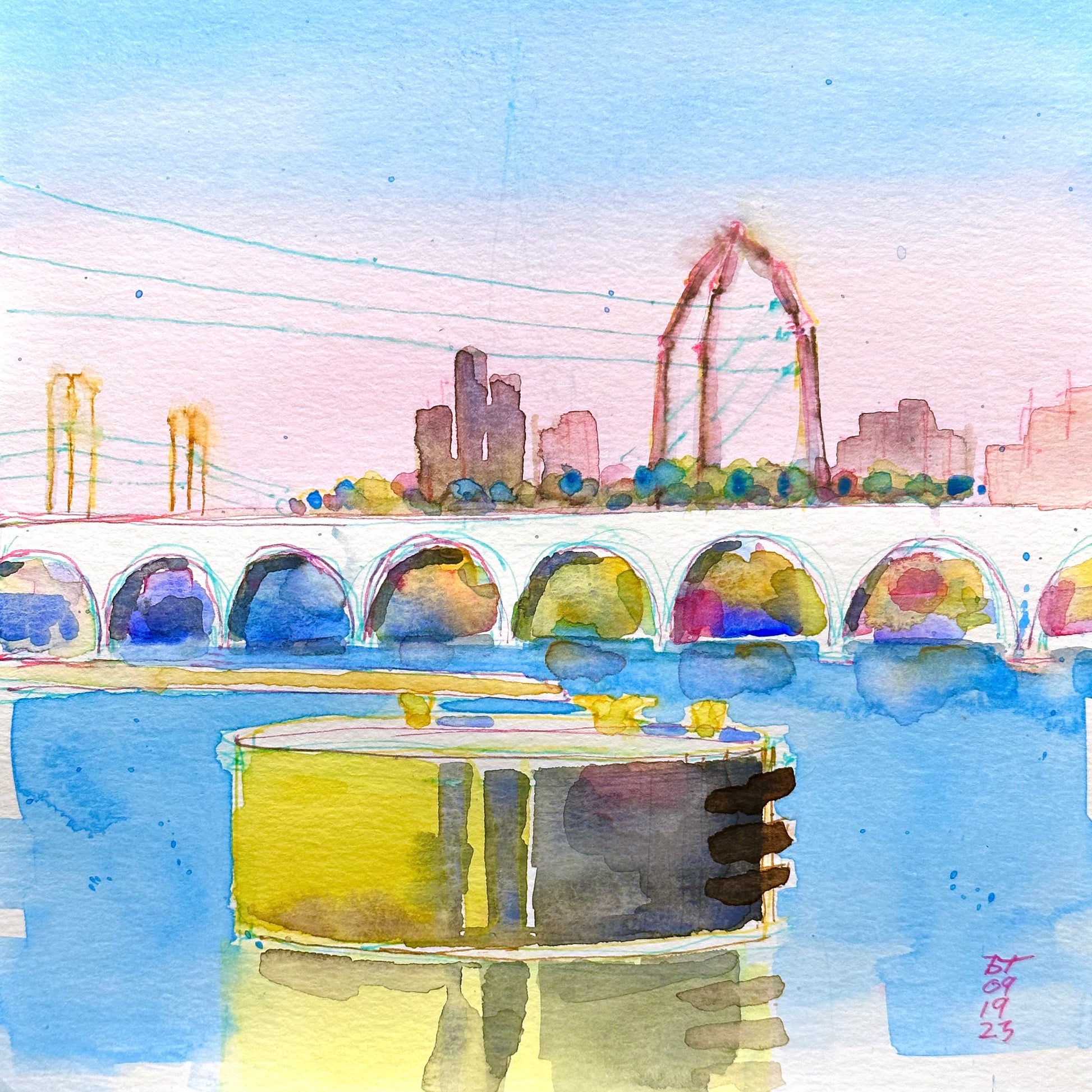 Made to fit a 8" x 8" frame size, or 8" x 8" mat window opening. Fits nicely into this frame, with mat, from Amazon (outer dimensions of actual frame 12" x 12").