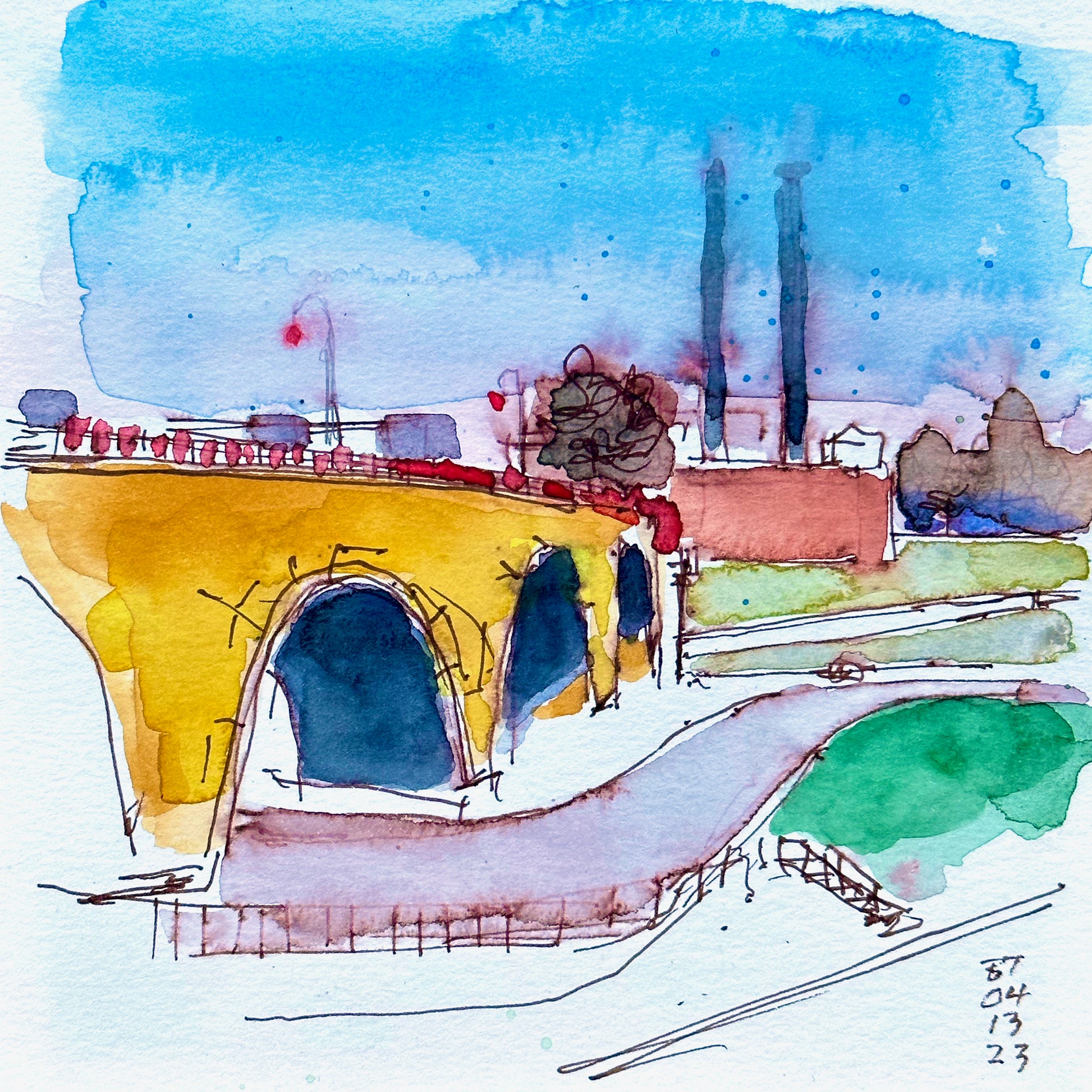 Stone Arch Bridge and Power Plant, 04.13.23 (6x6)