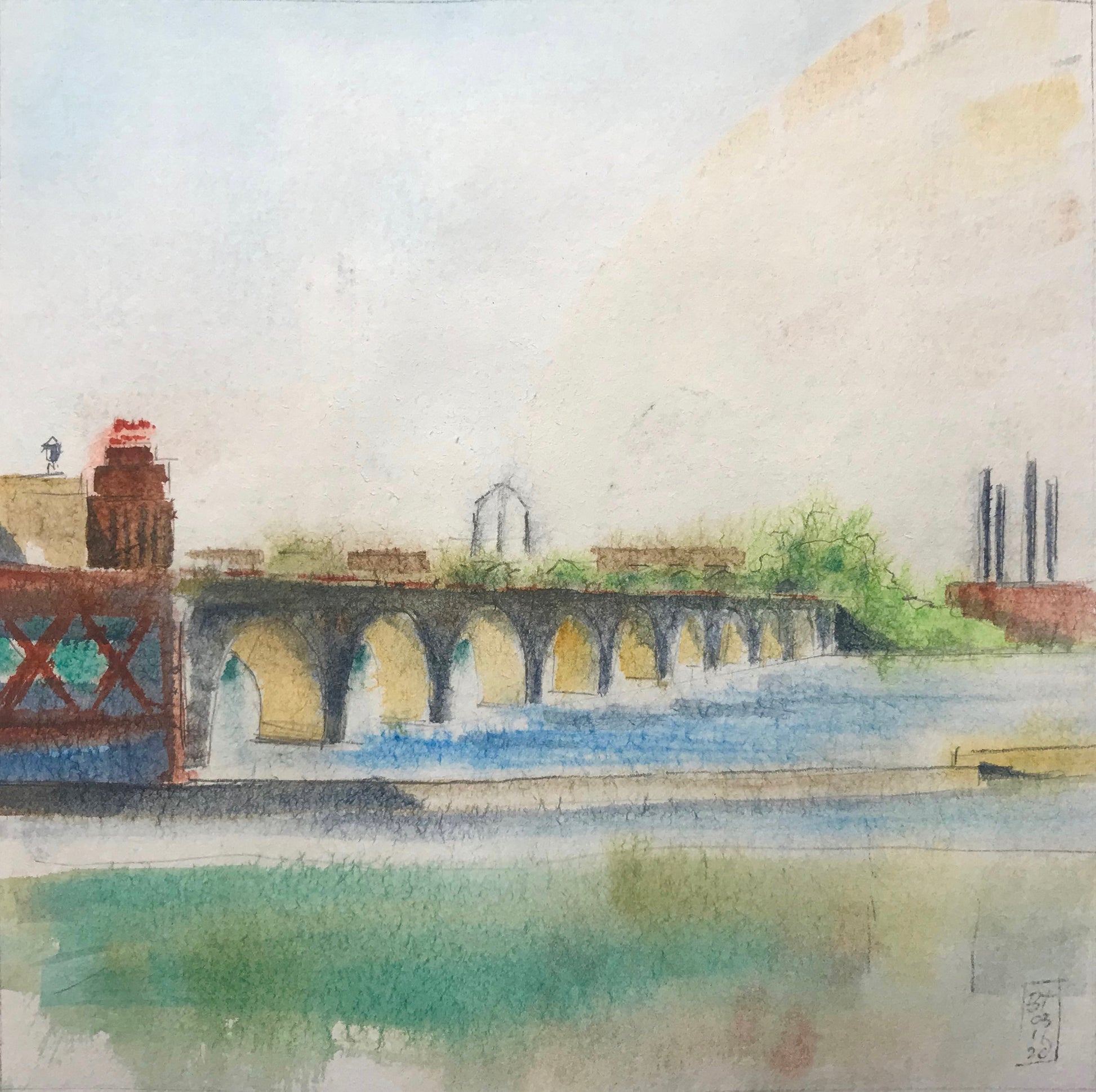 An original watercolor and ink sketch, on heavyweight paper. Fits a 8" x 8" mat opening.