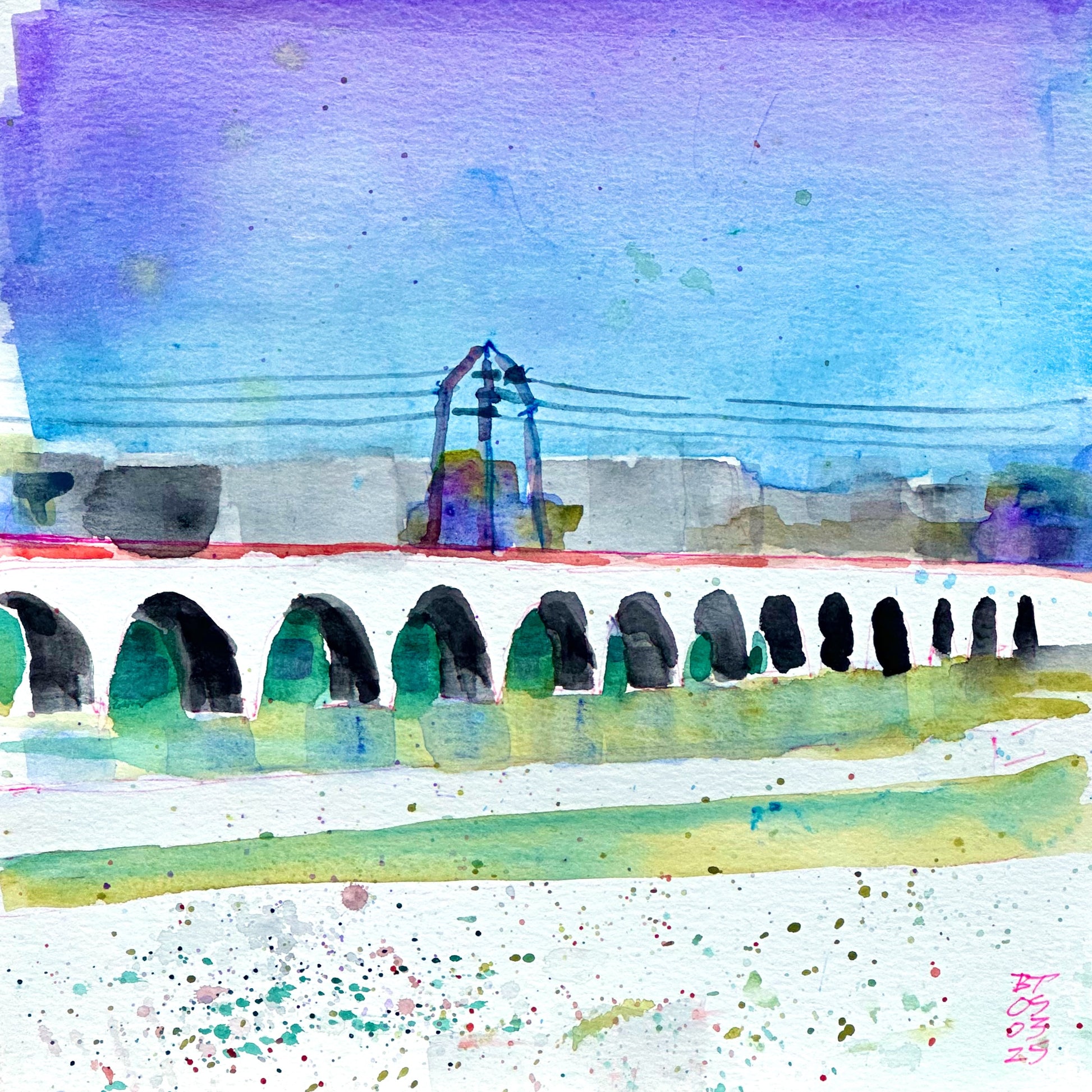8" x 8". Fits nicely into this frame, with mat, from Amazon.