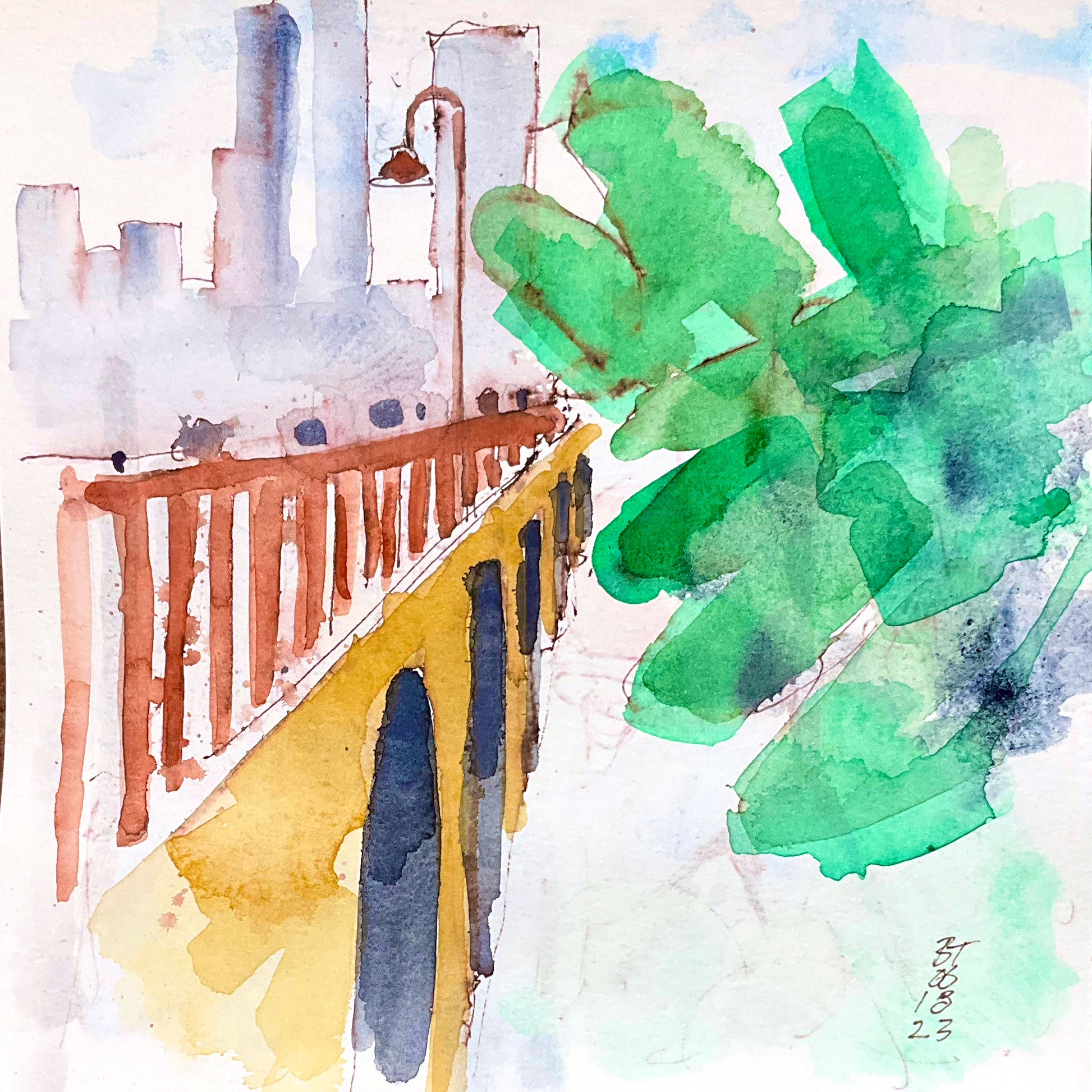 stoneArch Bridge, side view and Minneapolis skyline, 06.18.23