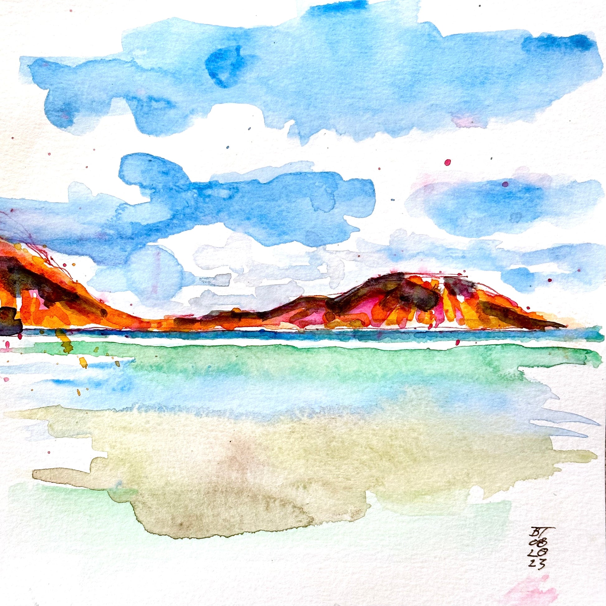 Made to fit a 8" x 8" frame size, or 8" x 8" mat window opening. Fits nicely into this frame, with mat, from Amazon (outer dimensions of actual frame 12" x 12").
