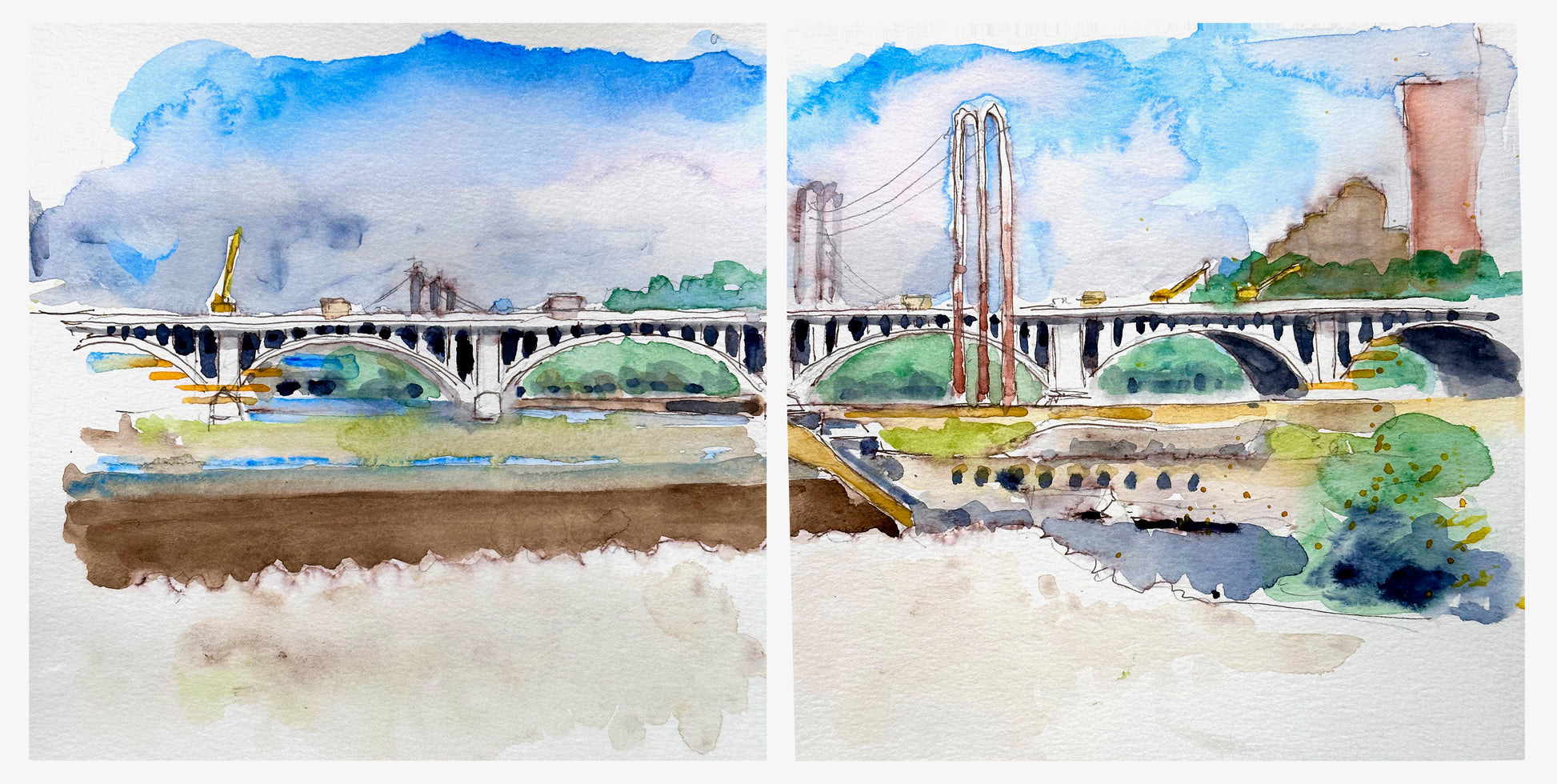 Diptych of two 8x8 watercolor sketches created as one composition.
