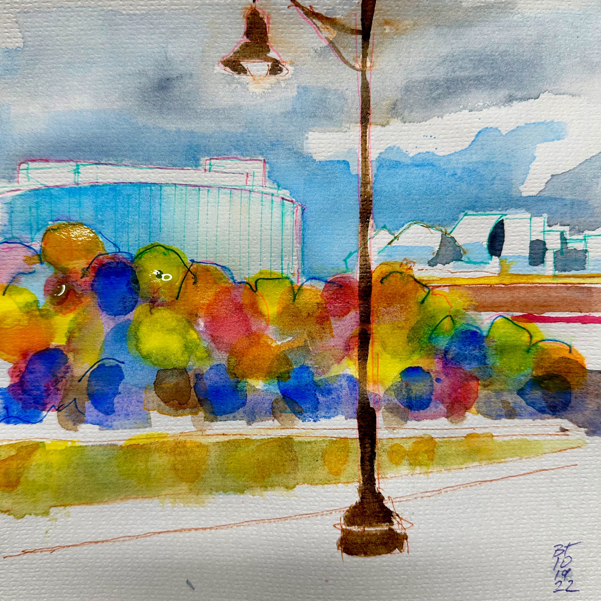 Made to fit a 8" x 8" frame size, or 8" x 8" mat window opening. Fits nicely into this frame, with mat, from Amazon (outer dimensions of actual frame 12" x 12").