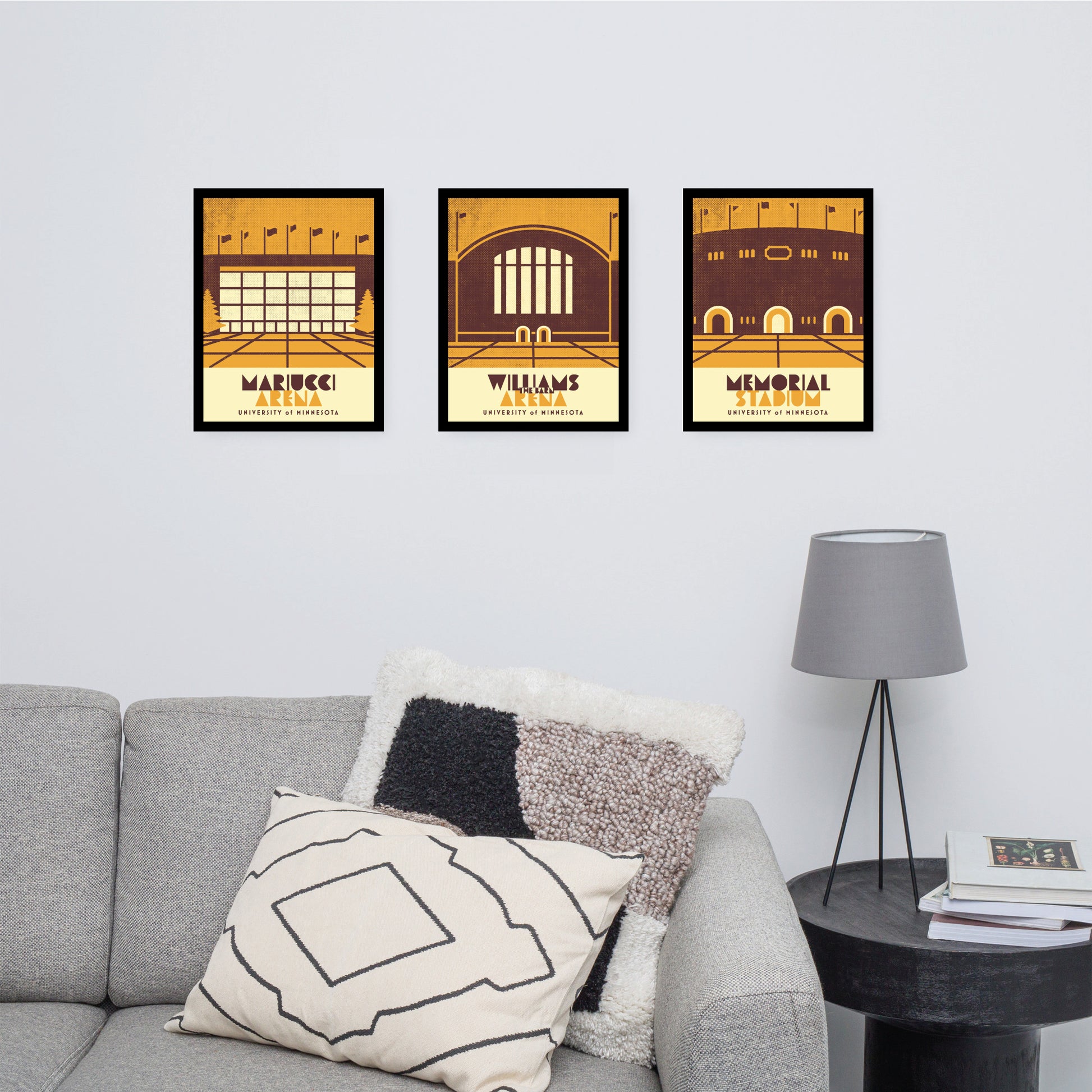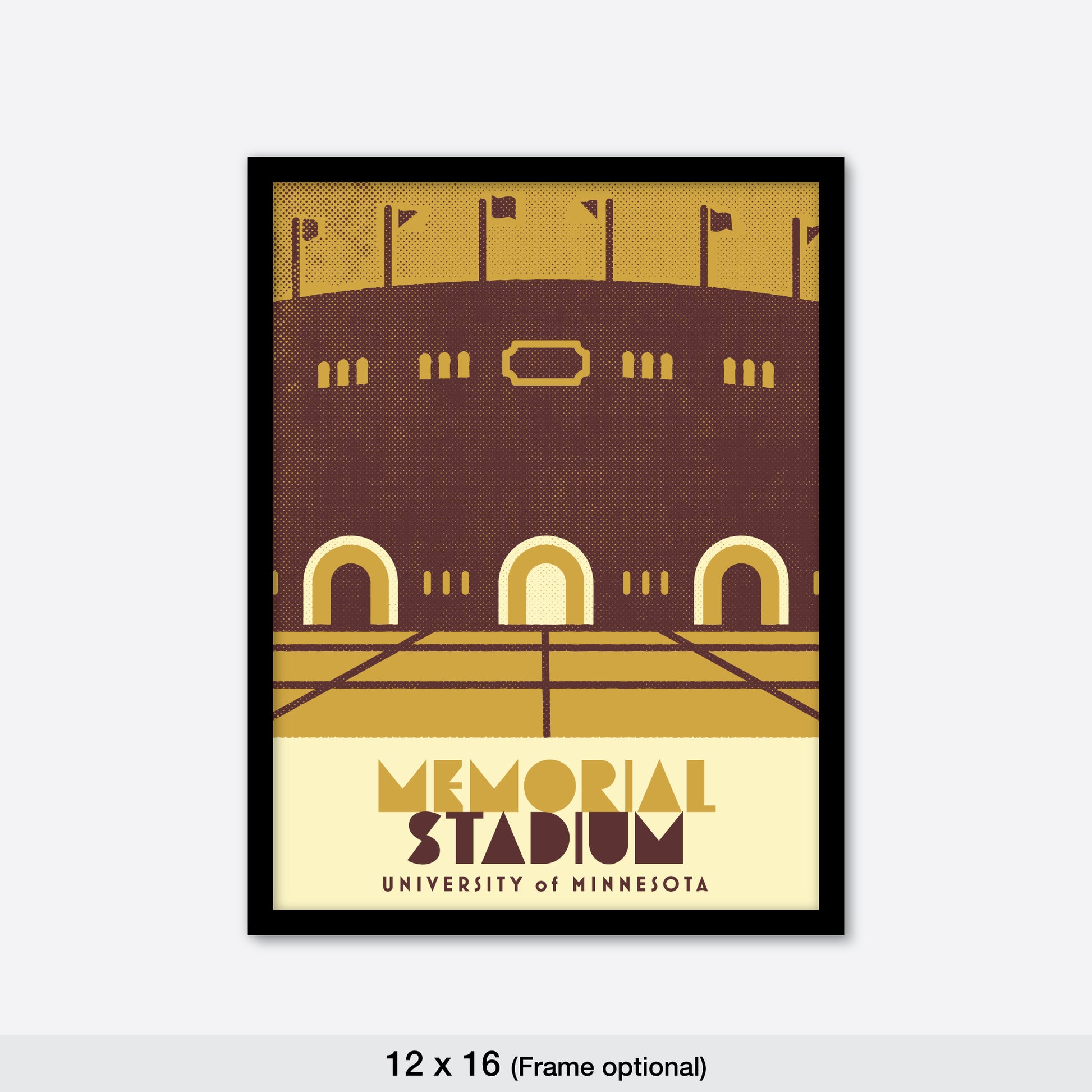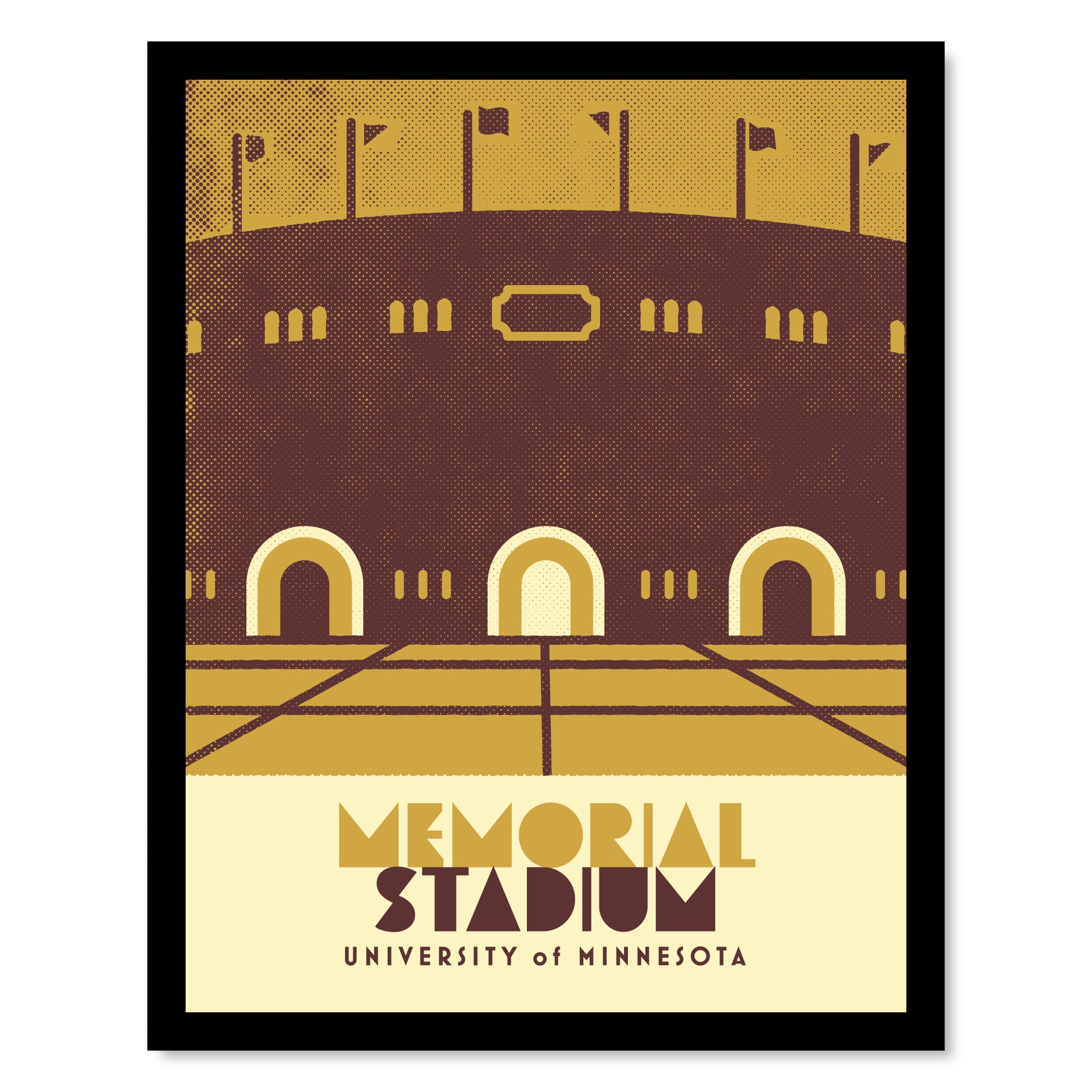 Minnesota sports venues—past and present! Minimalist art style in vintage color treatment.