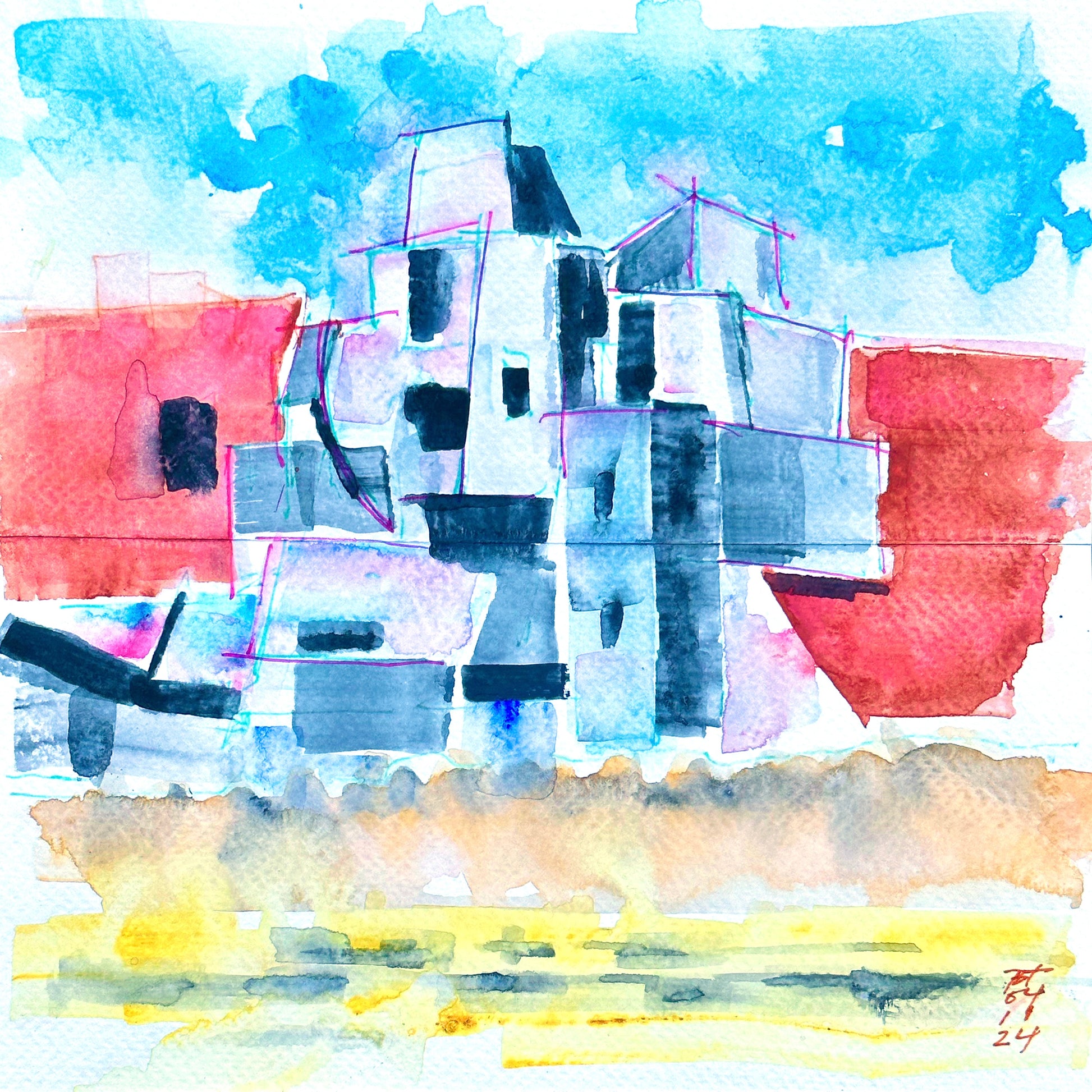 8" x 8". Fits nicely into this frame, with mat, from Amazon.